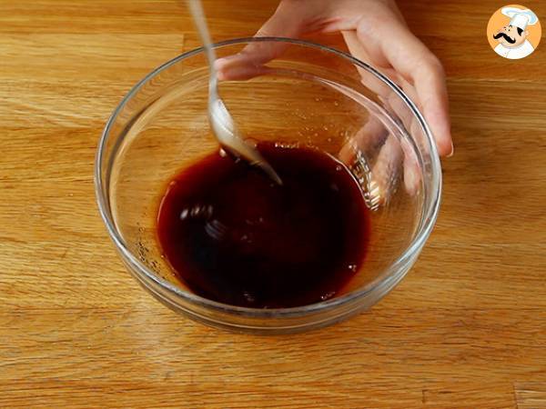 Préparer la sauce : mélanger le sucre, la sauce soja, le vinaigre de riz, le jus de citron et la sauce poisson.