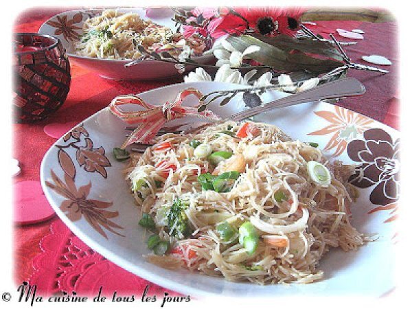 Pad thaï aux légumes et aux crevettes, la suite de notre st-valentin votez maintenant PrécédentSuivant Platfacile17 min Envoyer cette recette à un ami Imprimer cette page Poser une question à l'auteur Publier votre photo de cette recette Ingrédients 2 Les vermicelles Pad Thaï : 1 paquet de vermicelles de riz de grosseur moyenne 1/3 tasse (80 ml) d'huile d'arachide pour la cuisson 1/2 tasse (125 ml) de sucre 2 gousses d'ail, hachées 2 1/2 t. (625 ml) de bouillon de poulet 2 cuillères à soupe (30 ml) de sauce poisson 2 cuillères à soupe (30 ml) de sauce soya foncée 2 cuillères à soupe (30 ml) de sauce aux huîtres Sel Le Pad thaï aux légumes et aux crevettes (à doubler pour 2 personnes) : 1/3 tasse (80 ml) de poivron vert, coupé en dés 1/3 tasse (80 ml) de poivron rouge, coupé en dés 1 tasse (250 ml) de brocoli, séparé en petits bouquets 6 crevettes 1 cuillère à soupe (15 ml) de sauce poisson 1 cuillère à thé (5 ml) de sauce aux huîtres 1 cuillère à thé (5 ml) de sucre 1/4 tasse (60 ml) de bouillon de volaille 1/2 tasse (125 ml) de fèves germées 1 tasse (250 ml) de pad Thaï 1 quartier de lime 1 cuillère à soupe (15 ml) d'arachides grillées et concassées 1/2 oignon vert, coupé en lamelles Huile d?'arachide pour la cuisson
