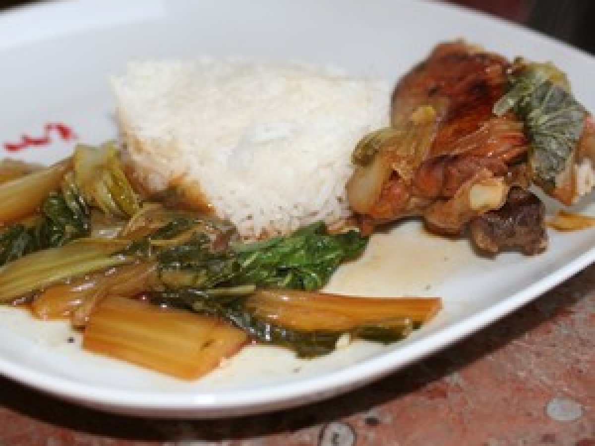 Pak-choï (ou chou chinois) caramélisé et poulet laqué