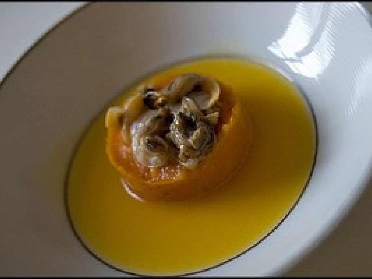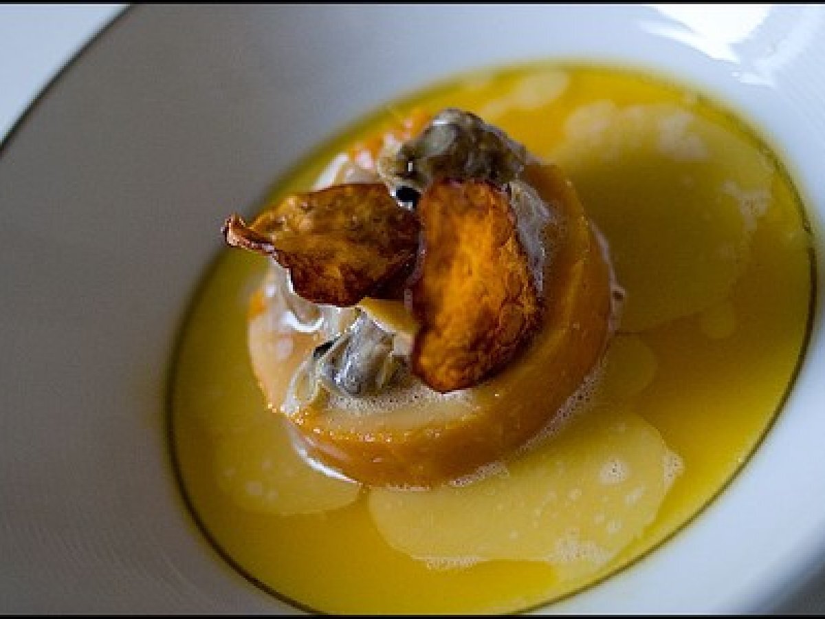 Palourdes à la patate douce, jus de mandarine à l'huile d'olive