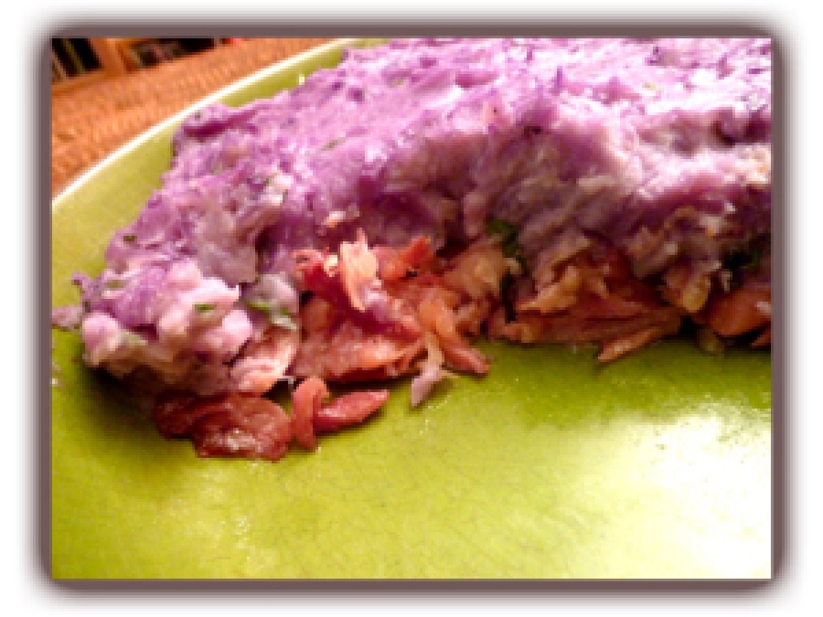 Parmentier de cailles confites aux pommes de terre vitelottes.