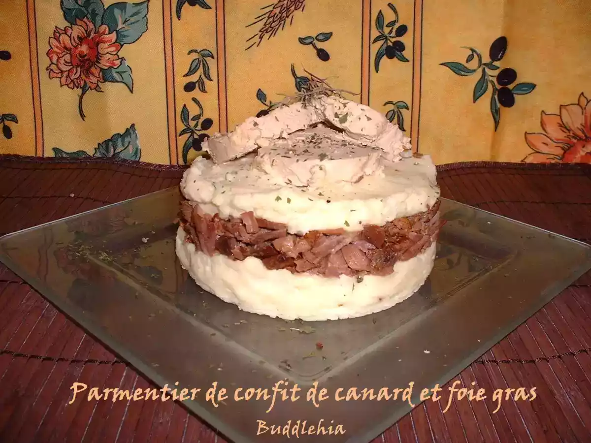 Parmentier de confit de canard et de foie gras Platmoyen1 h 10 m693 Kcal Envoyer cette recette à un ami Imprimer cette page Poser une question à l'auteur Publier votre photo de cette recette Ingrédients 4 4 tranches rondes de foie gras 300 gr de ris d'agneau 150 gr d'aiguillettes de canard 700 gr de pommes de terre 2 échalotes 1 c à s de persil ciselé 10 cl de crème liquide 1 c à s d'huile d'olive 20 gr de beurre 1/2 c à café de zeste d'orange râpé sel et poivre