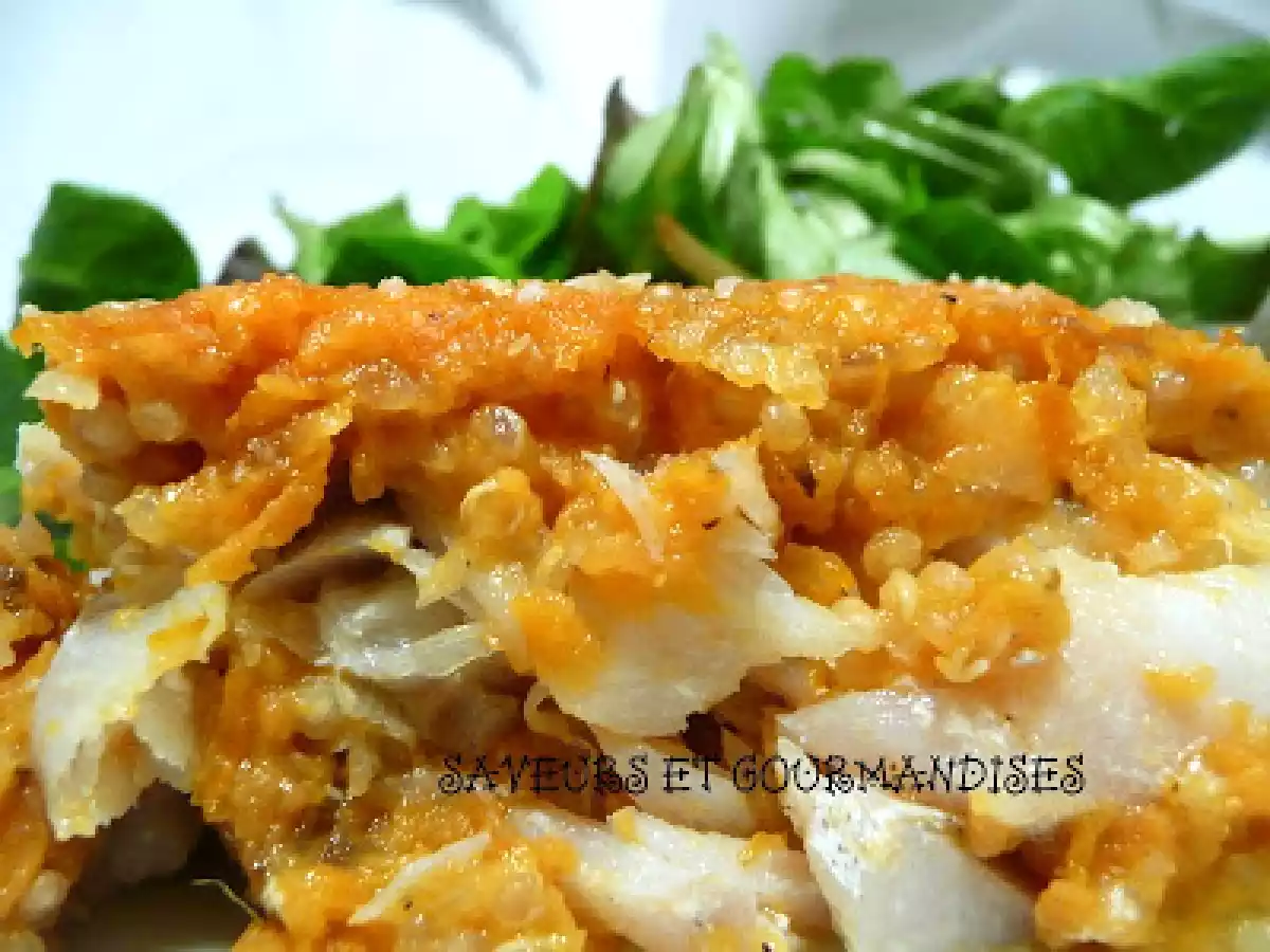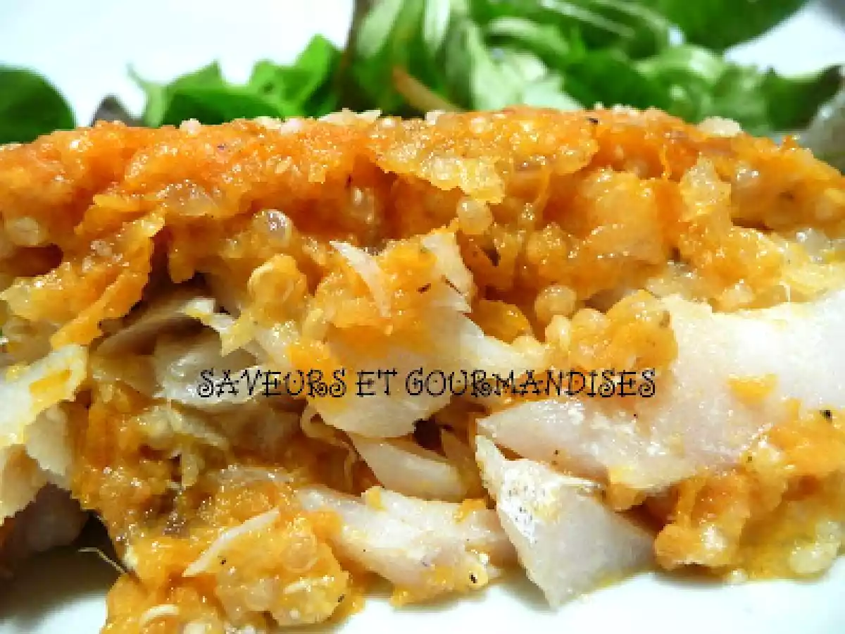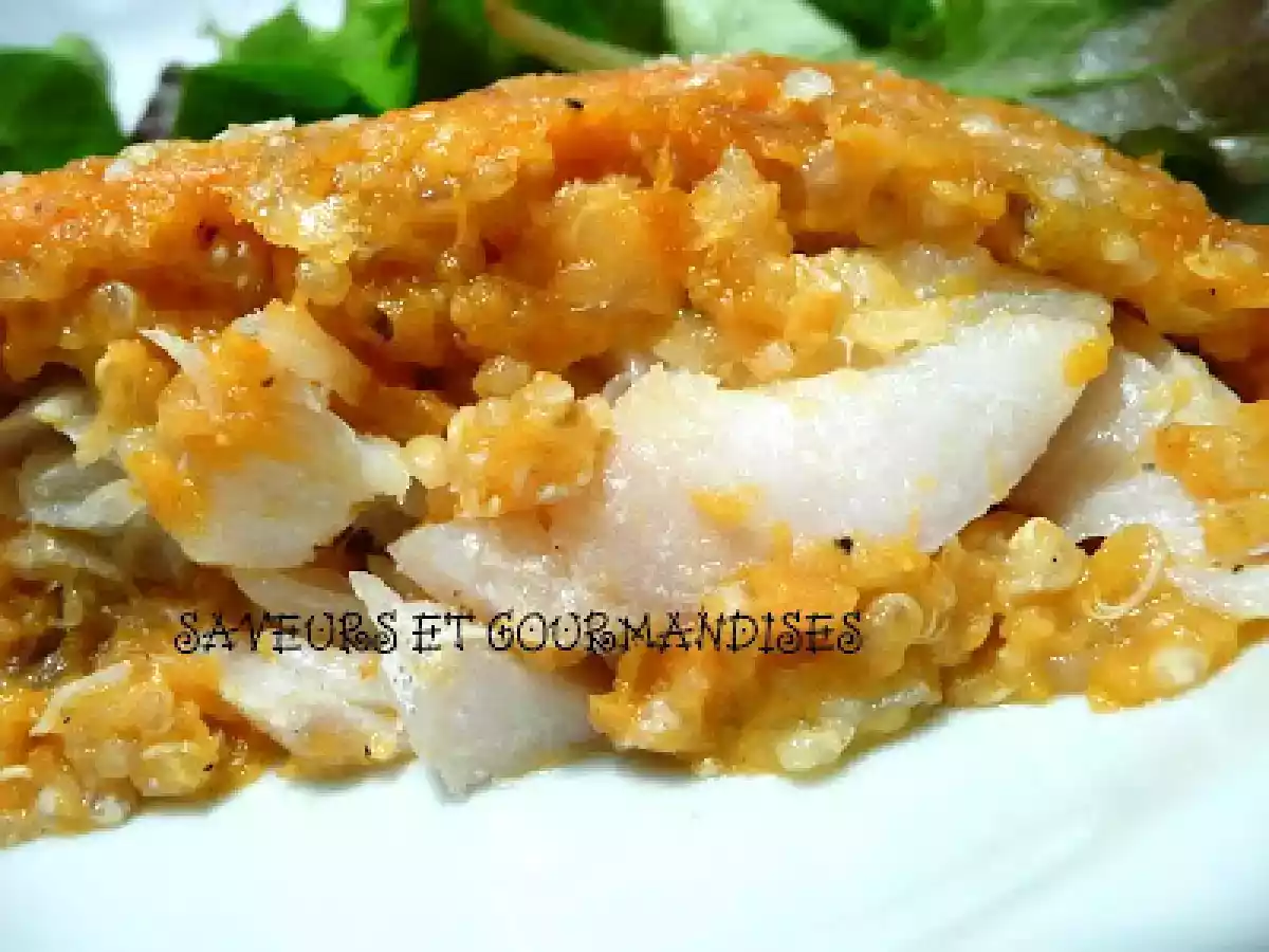 Parmentier de poisson aux patates douces et quinoa. PrécédentSuivant Platfacile1 h 20 m345 Kcal Envoyer cette recette à un ami Imprimer cette page Poser une question à l'auteur Publier votre photo de cette recette Ingrédients 4 850 g de patates douces 100 g de quinoa rouge 500 g de filet de lieu noir 1 petit oignon émincé 1 cuillère à soupe bombée de crème fraiche 2 cuillères à soupe de parmesan fraichement râpé Huile d'olive Sel et poivre Coût estimé: 11.59Euros€ (2.9€/part)