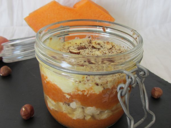 Parmentier de potimarron, poulet, mascarpone et noisettes