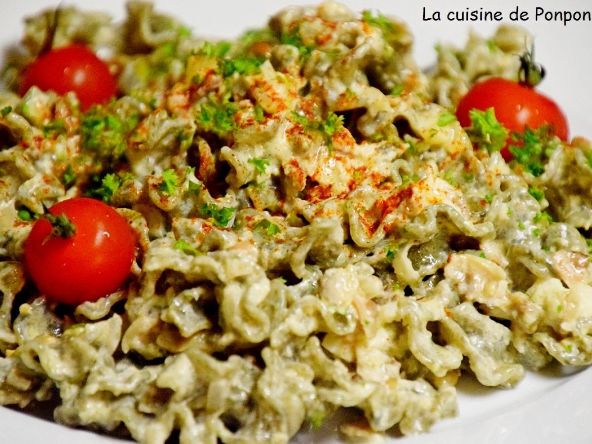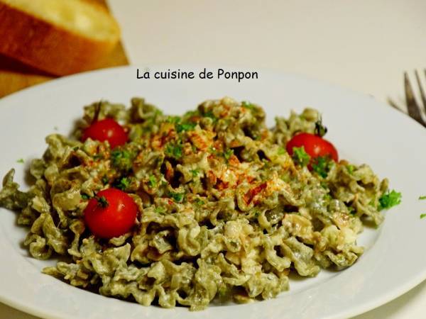 Un souper tout simple à préparer avec des pâtes à la laitue de mer Je ne pouvais pas les accompagner de viande! Il fallait du poisson ou des coquillages. Et je me souvenais avoir acheté il y a bien longtemps un petit pot de vongole (=paloures) Italiamo de chez Lidl. J'avais trouvé l'association!