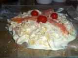 Pâté au saumon taillefer Platfacile1 h 5 m Envoyer cette recette à un ami Imprimer cette page Poser une question à l'auteur Publier votre photo de cette recette Ingrédients 4 3/4 tasse d'oignon haché 3/4 tasse de céleri haché 1/4 tasse beurre 1/2 tasse de farine 1 boîte de 14 oz de saumon du pacifique égoutté (gardé le jus) 1 tasse de lait 1 cuillère à table de concentré liquide de bouillon de poulet 3 pomme de terre pelées, cuites et coupées en dés de 2 cm 3 oeufs durs et tranchés 3 cuillères à table de persil frais Croûte: 1/2 tasse de graisse végétal 2 tasses de farine 1/2 cuillère à thé de sel 1 cuillère à thé de graines de céleri 1/3 tasse d'eau glacée Dorure: 1 jaune d’oeuf