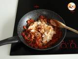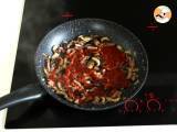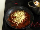 À ce stade, ajouter la sauce tomate, assaisonner de sel et de poivre et laisser mijoter la sauce pendant 10 à 12 minutes à feu moyen. Remuer régulièrement.