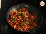 Faire cuire les pâtes dans une grande quantité d'eau salée en suivant les indications figurant sur l'emballage. Lorsqu'elles sont cuites, les verser dans la poêle avec la sauce, tout en conservant un peu d'eau de cuisson pour l'ajouter dans la sauce. Mélanger et saupoudrer de persil haché.