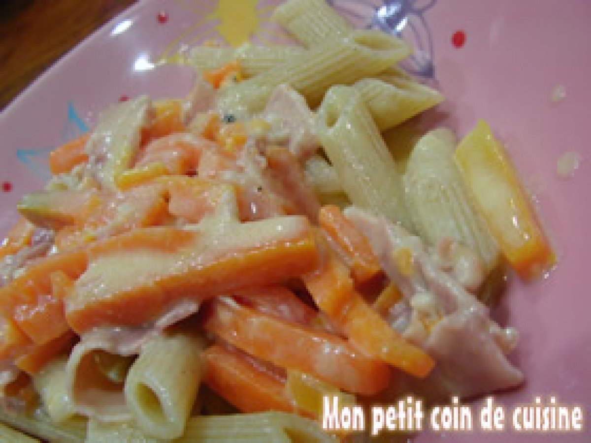 Pâtes à la crème au fromage et aux carottes votez maintenant Platfacile35 min462 Kcal Envoyer cette recette à un ami Imprimer cette page Poser une question à l'auteur Publier votre photo de cette recette Ingrédients 4 300 g de penne 2 grandes tranches de jambon blanc 2 belles carottes 3 cuillères à soupe de crème fraîche 1 gousse d'ail 125 g de tomme de brebis affinée 1/2 cuillère à café de paprika sel poivre du moulin