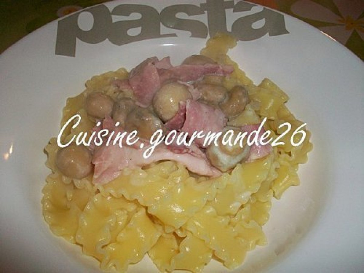 Pâtes à la crème, jambon et champignons Platfacile20 min605 Kcal Envoyer cette recette à un ami Imprimer cette page Poser une question à l'auteur Publier votre photo de cette recette Ingrédients 4 2 échalotes 200 g de jambon cuit 250 g de champignons de Paris 2 belles noix de beurre 25 cl de crème fraiche épaisse 4 cs de parmesan râpé 250 g de pâtes 1 botte de ciboulette Sel, poivre Coût estimé: 9.39Euros€ (2.35€/part)