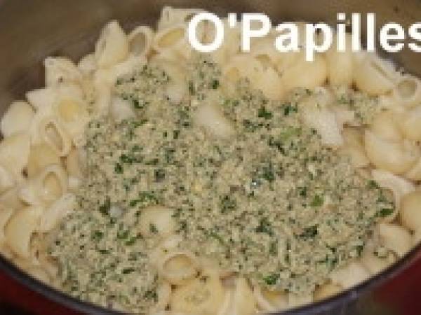 Pâtes à la sauce au persil et aux noix Platfacile20 min Envoyer cette recette à un ami Imprimer cette page Poser une question à l'auteur Publier votre photo de cette recette Ingrédients 4 500g de pipe rigate du persil 8 noix 1 gousse d'ail 8 filets d'anchois 2 oeufs 3 cuillères à soupe d'huile de sésame 3 cuillères à soupe d'huile de colza sel et poivre