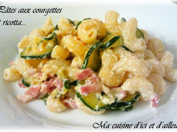 Pâtes aux courgettes et ricotta Platfacile35 min502 Kcal Envoyer cette recette à un ami Imprimer cette page Poser une question à l'auteur Publier votre photo de cette recette Ingrédients 4 2 courgettes 200 gr de lardons 300 gr de pâtes 125 gr de ricotta 2 gousses d'ail 1 cuillère à soupe d'huile d'olive 1 cuillère à café de piment d'Espelette sel Coût estimé: 5.17Euros€ (1.29€/part)
