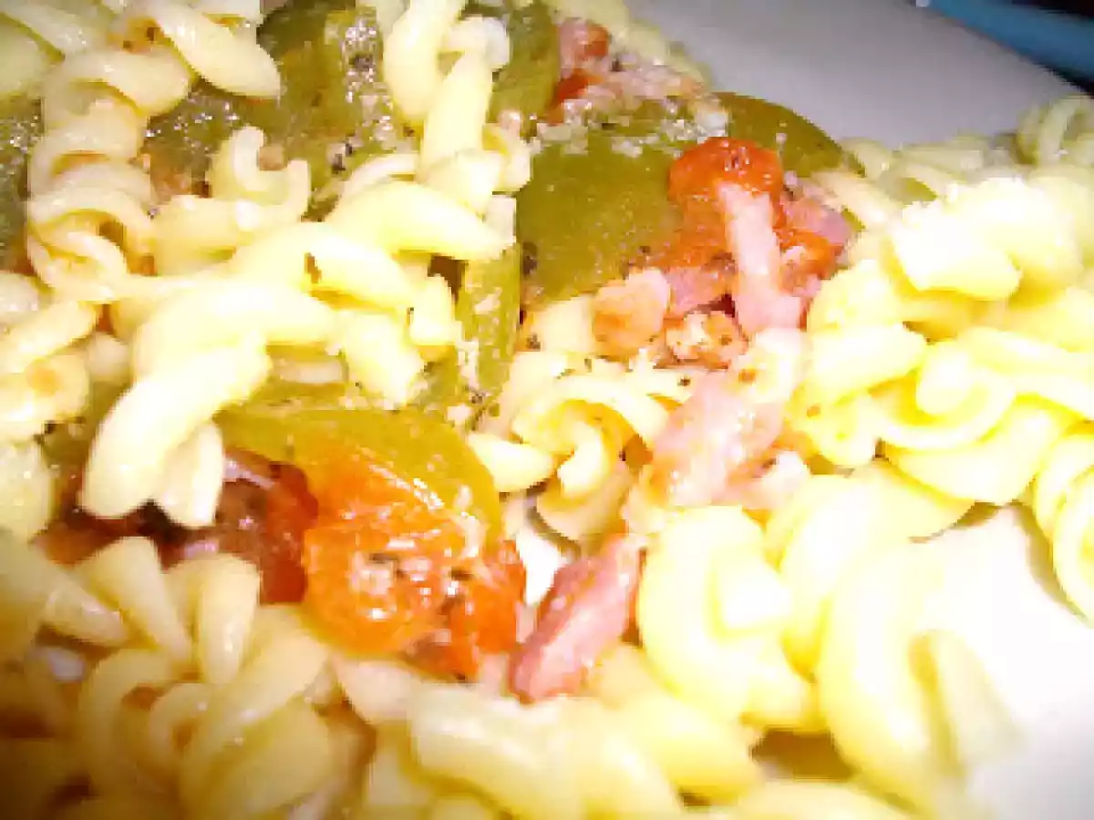 Pâtes aux lardons-poivron et tomates Platfacile25 min367 Kcal Envoyer cette recette à un ami Imprimer cette page Poser une question à l'auteur Publier votre photo de cette recette Ingrédients 2 100 g d'allumettes de lardons 1 poivron 2 tomates des pâtes 2 cas parmesan ou de gruyère basilic Coût estimé: 2.49Euros€ (1.24€/part)