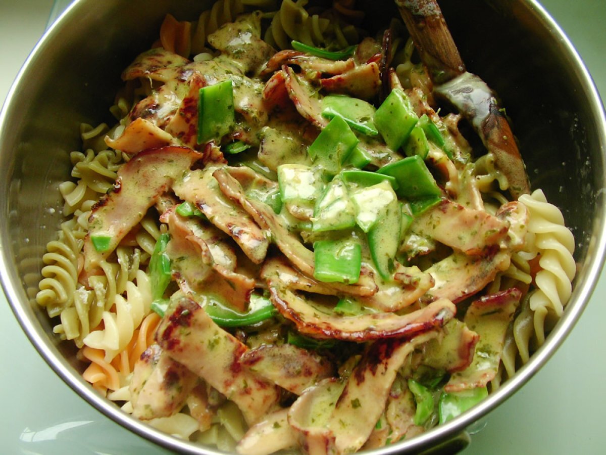 Pâtes aux pois gourmands et au bacon Platmoyen30 min674 Kcal Envoyer cette recette à un ami Imprimer cette page Poser une question à l'auteur Publier votre photo de cette recette Ingrédients 4 600 g de fusilli 12 tranches de bacon 200 g de pois gourmands 1 petit bouquet de persil 6 branches de thym 12 feuilles de menthe 4 cs de crème fraîche sel et poivre du moulin Coût estimé: 4.1Euros€ (1.02€/part)