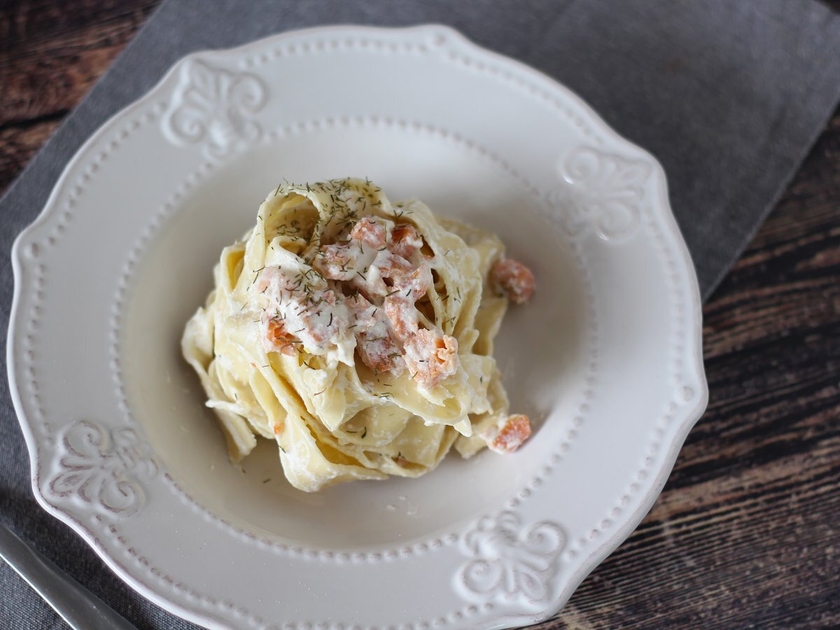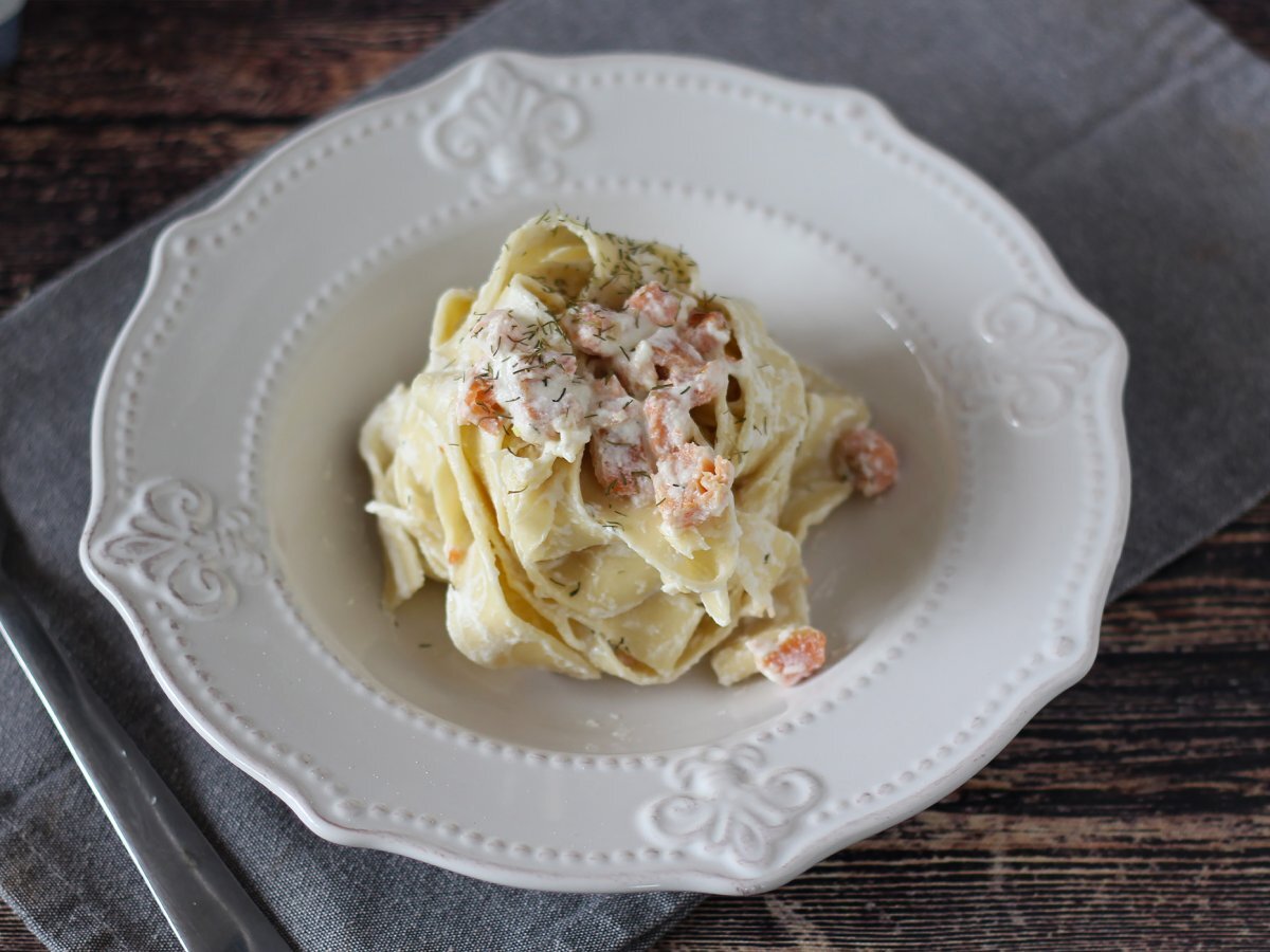 Les pâtes crémeuse à la ricotta au saumon fumé sont une recette que vous devriez toujours envisager lorsque vous manquez de temps mais que vous voulez apporter un plat savoureux à la table! Habituellement, les pâtes au saumon sont préparées avec de la crème ou du fromage Philadelphia, mais la combinaison avec la ricotta et l'aneth est une alternative intéressante qui vous permettra d'offrir à vos invités de nouvelles saveurs. Au lieu des pappardelles, vous pouvez aussi utiliser des pâtes courtes comme les farfalles. Essayez cette recette et faites-nous savoir si vous l’aimez!