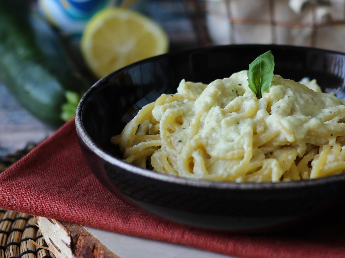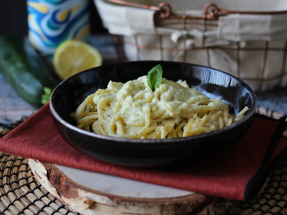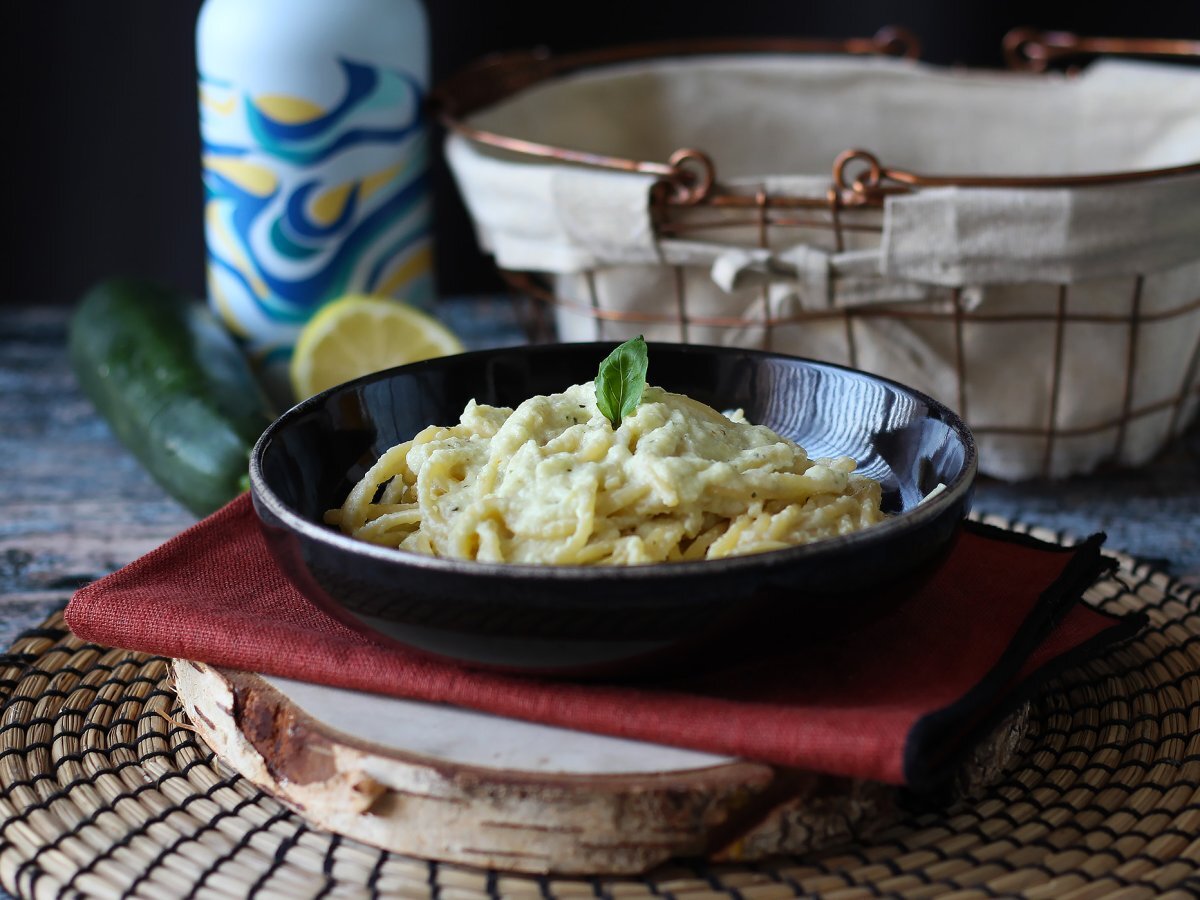 Pâtes crémeuses aux courgettes, citron et yaourt grec