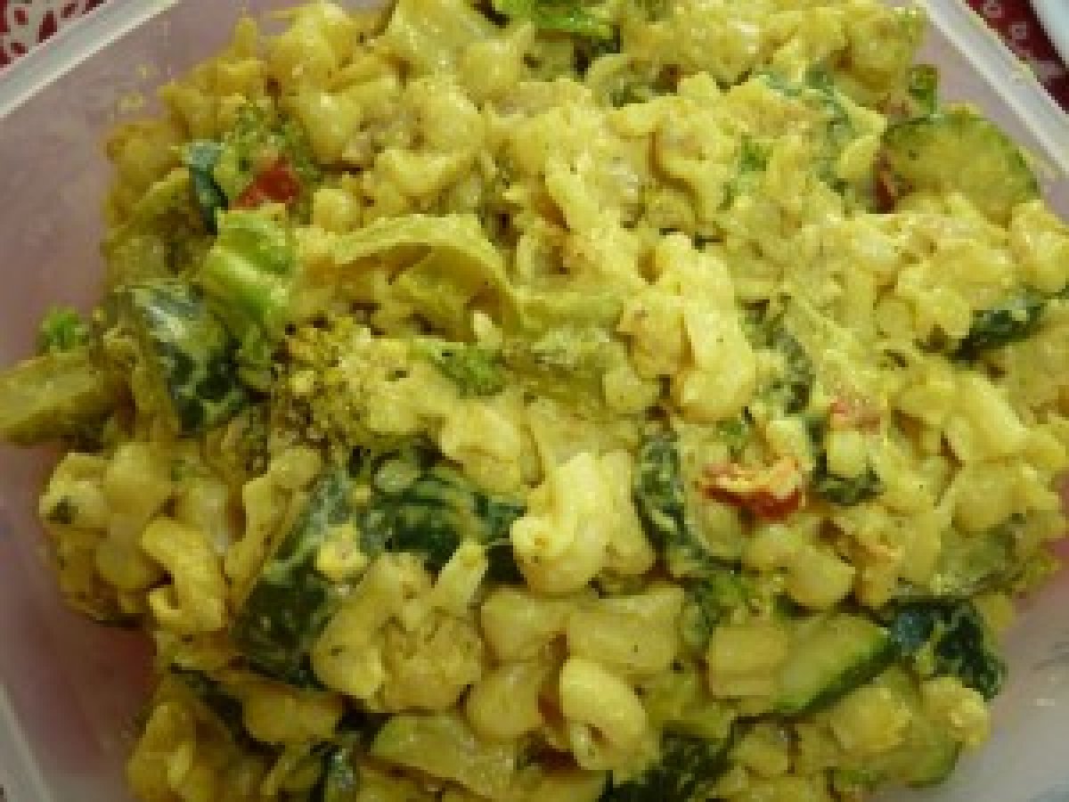 Pâtes jardinière au curcuma et au thon votez maintenant Platfacile57 min Envoyer cette recette à un ami Imprimer cette page Poser une question à l'auteur Publier votre photo de cette recette Ingrédients 4 4 courgette 1 brocoli 125 ml de lait de soja 125 ml de vin blanc sec 8 tomates séchées bio 2 boîtes de thon 200 ml de soja cuisine ( disponible en magasin bio) 500 grammes de pâtes de bonne qualité 2 cuillères à soupe de curcuma 2 cuillères à soupe d’huile d’olive 1 grosse bûche de fromage de chèvre ou de brebis bien fait de bonne qualité