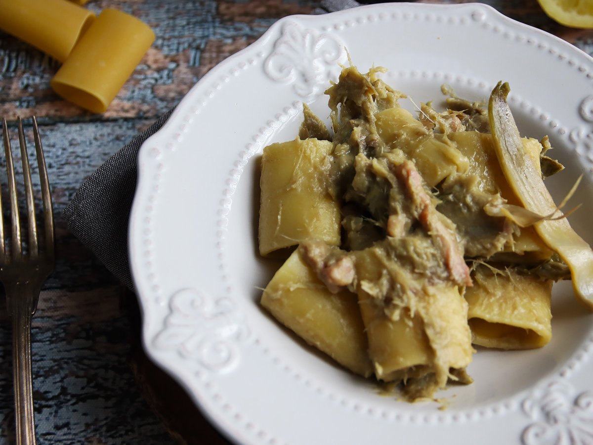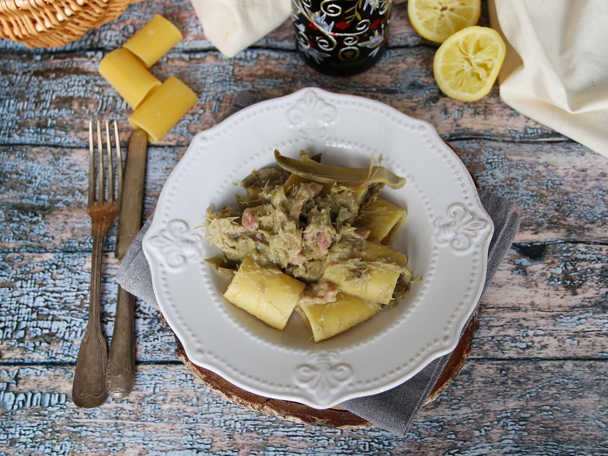 Encore à la recherche d'une nouvelle sauce pour accompagner vos pâtes ? Cette fois-ci on vous propose le combo artichaut / lardons. Et pour les pâtes ? Bien sûr vous pourrez choisir celles que vous souhaitez. Mais sachez qu'ici, après avoir découvert les Paccheri, on ne peut plus s'en passer ! De grosses pâtes cylindriques où la sauce viendra se glisser pour une dégustation encore plus parfaite... Bref, on vous laisse avec les étapes pas à pas de notre recette ci-dessous ↓ ↓