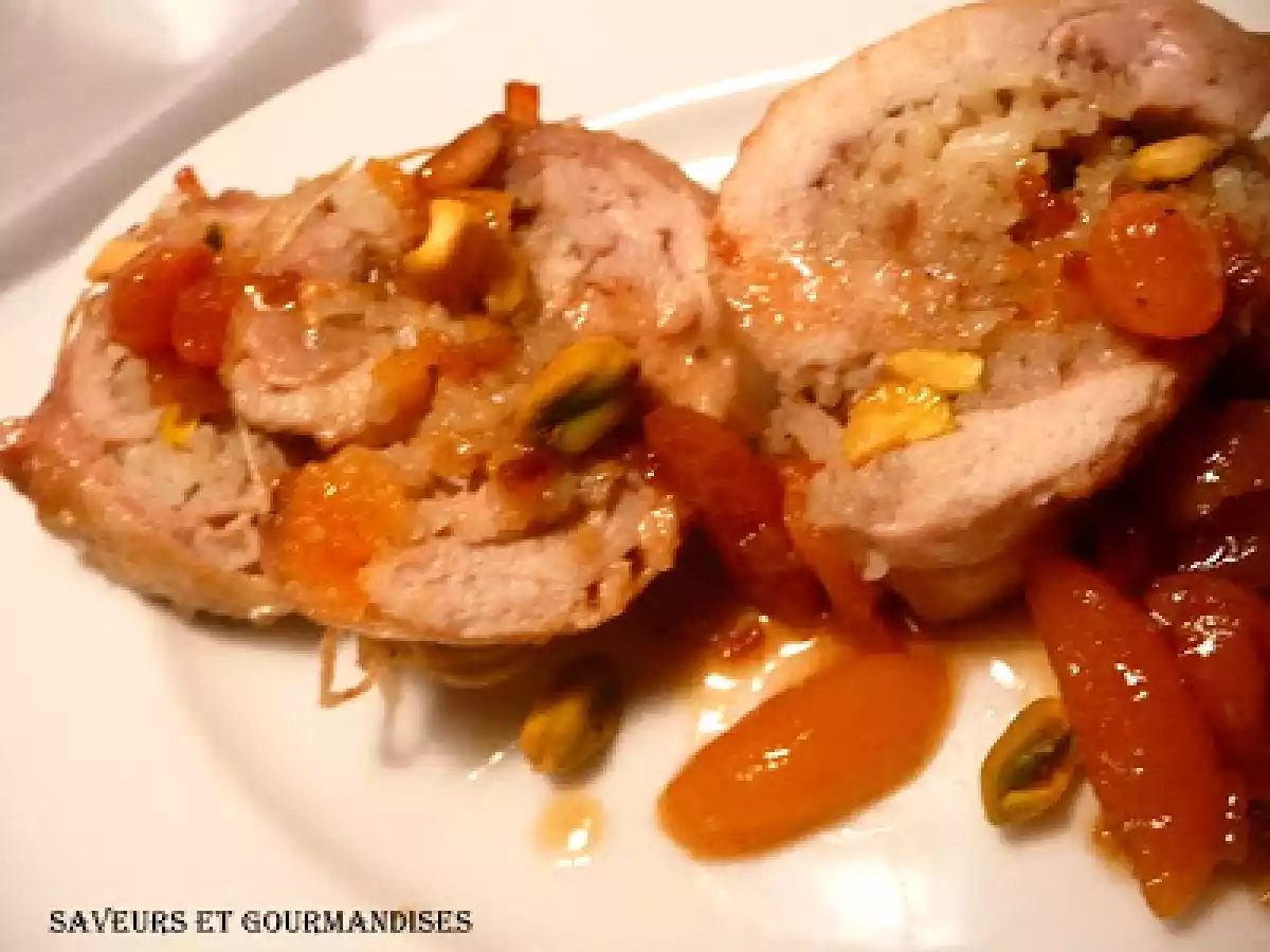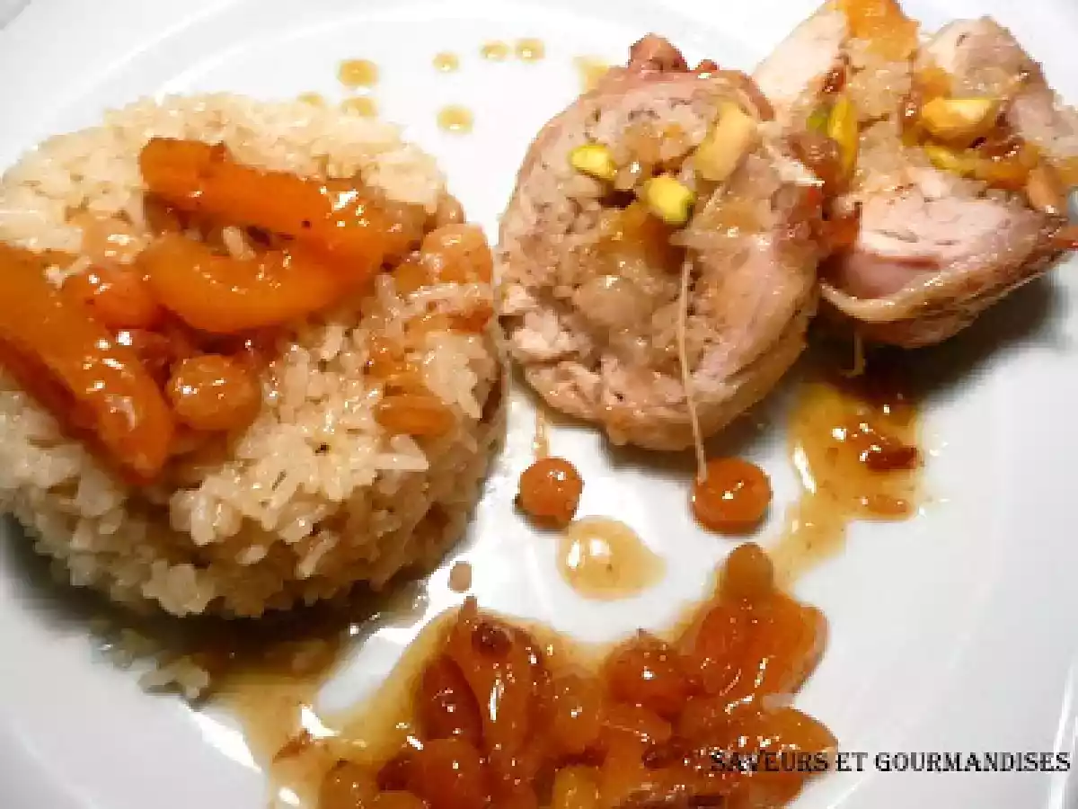 Paupiettes de poulet sheherazade. PrécédentSuivant Platfacile1 h 20 m878 Kcal Envoyer cette recette à un ami Imprimer cette page Poser une question à l'auteur Publier votre photo de cette recette Ingrédients 3 500 g de poulet 80 g de riz 20 g de pignon de pin 20 g de raisins de Smyrne 20 g de pistaches mondées 10 cl d'huile d'olive 2 g de toutes-épices 2 g de canne en poudre 60 g d'abricots secs 80 g de sauce tomates 1 bol de bouillon de poulet 4 g sel 2 g de poivre Décoration : Graines de pistaches