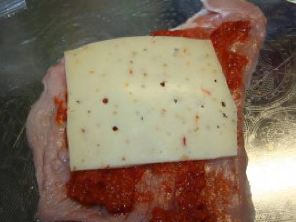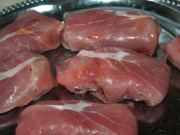 Paupiettes de veau au chorizo votez maintenant Platfacile35 min Envoyer cette recette à un ami Imprimer cette page Poser une question à l'auteur Publier votre photo de cette recette Ingrédients 4 8 tranches de veau coupées finement 1 pot de tapenade de poivrons quelques tranches de chorizo 8 petites tranches de fromage toscan 8 tranches de jambon fumé huile d'olive margarine 3 dl de bouillon de boeuf vinaigre de Xérès