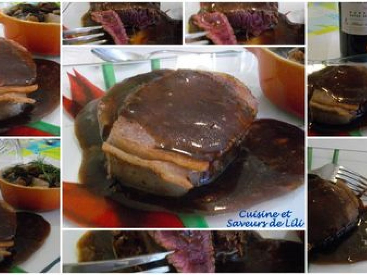 - Déglacer la poêle avec le vin rouge et faire réduire de moitié. Ajouter le fond de veau et la chicorée liquide et laisser mijoter 4 à 5 minutes. Rectifier l'assaisonnement. Verser dans la saucière.