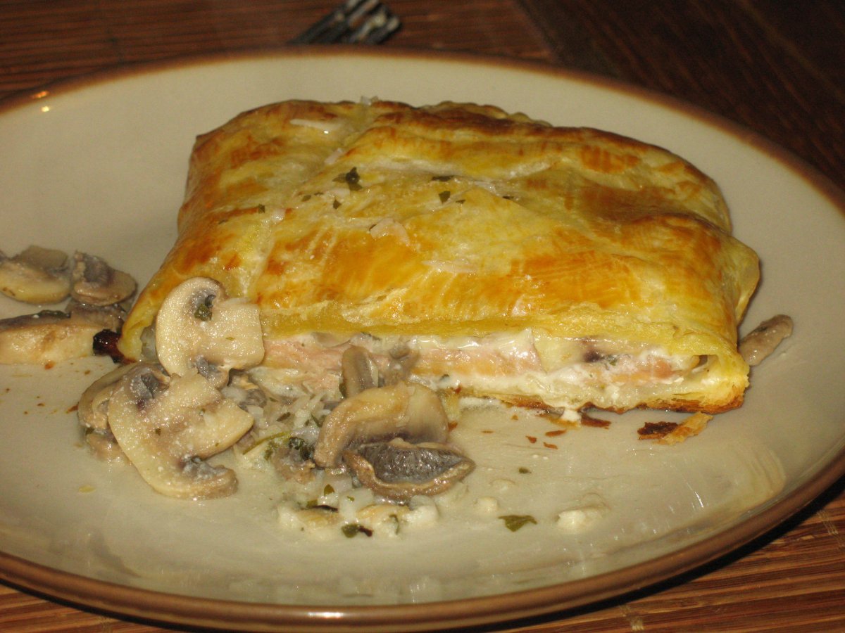 Pavé de saumon et champignons en feuilleté PrécédentSuivant Platfacile45 min1018 Kcal Envoyer cette recette à un ami Imprimer cette page Poser une question à l'auteur Publier votre photo de cette recette Bon mélange ! Ingrédients 2 1 rond de pâte feuilletée 2 pavés de saumon 150g de champignons de Paris 2 échalotes 10cl de vin blanc 1 cas de crème épaisse 2 tranches de fromage fondu (type toastinette) 1 jaune d'oeuf 1 cac de persil Huile d'olive Poivre Coût estimé: 7.18Euros€ (3.59€/part)