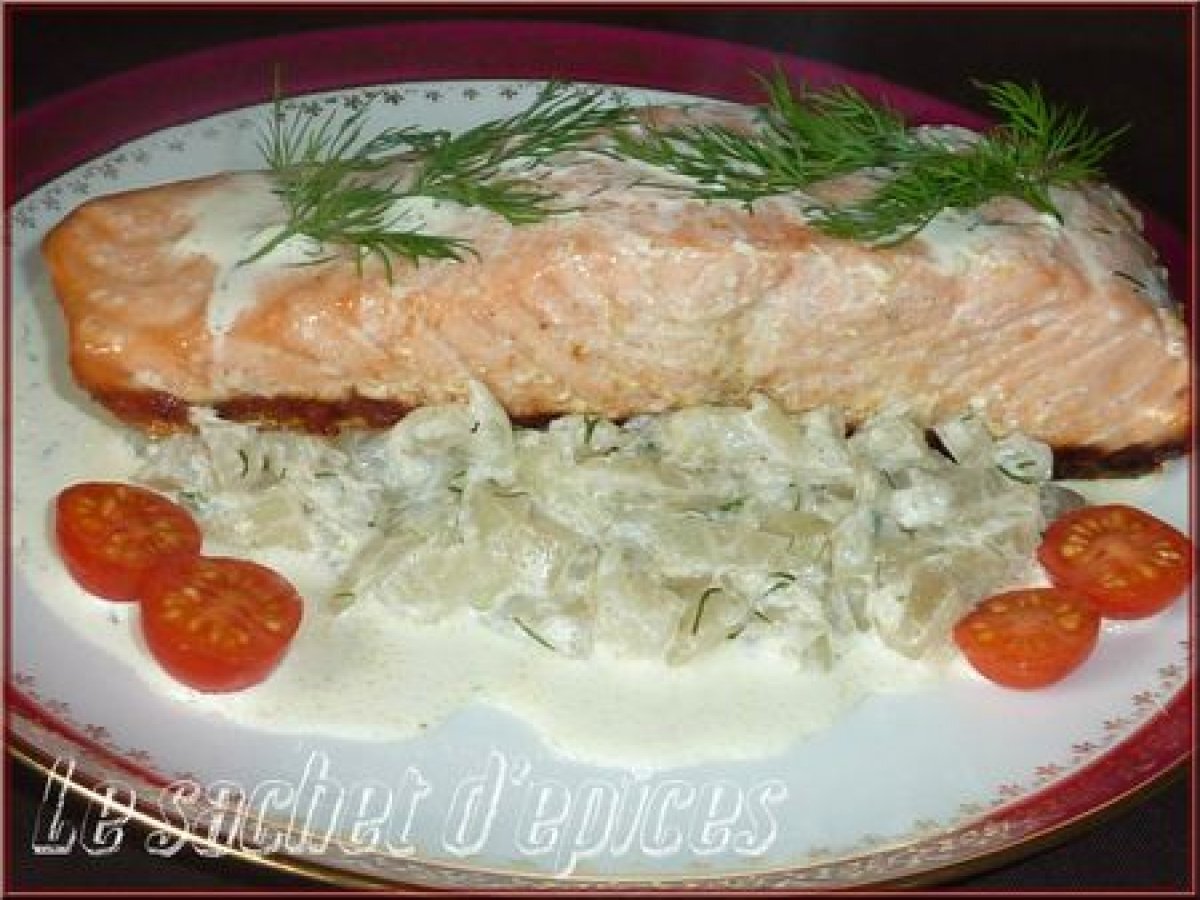 Pavé de saumon et sa sauce à l'aneth sur compotée de fenouil Platfacile1 h 5 m858 Kcal Envoyer cette recette à un ami Imprimer cette page Poser une question à l'auteur Publier votre photo de cette recette Ingrédients 2 2 pavés de saumon sans arrête avec leur peau 1 gros bulbe de fenouil 30 cl de crème liquide 30 g de beurre huile d'olive sel fin + fleur de sel, poivre aneth 4 tomates cerises Coût estimé: 6.86Euros€ (3.43€/part)