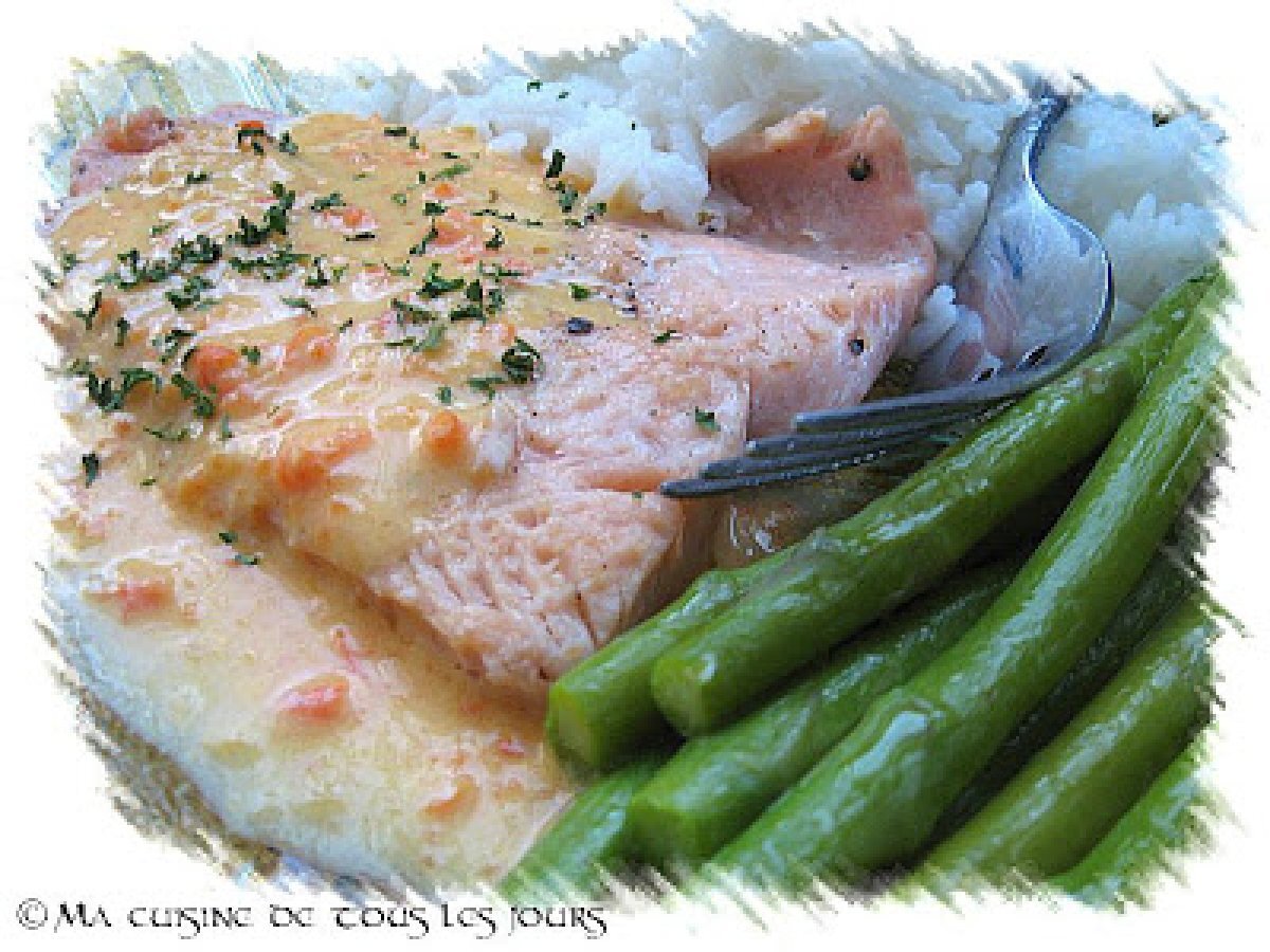 Un petit saumon fort simple accompagné d'une petite sauce bien velouté au lait de coco, poivron et lime, quoi de plus simple pour se régaler?!