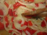 Pennes au chorizo et aux poivrons votez maintenant PrécédentSuivant Platfacile40 min1148 Kcal Envoyer cette recette à un ami Imprimer cette page Poser une question à l'auteur Publier votre photo de cette recette Ingrédients 2 250 g de pennes (ou autres pâtes) 200 g de chorizo 4 poivrons grillés en bocal 1 gros oignon 1 tomate 1 cube de bouillon (un cube bouillon de légumes basilic Maggi) margarine huile d'olive Coût estimé: 4.36Euros€ (2.18€/part)