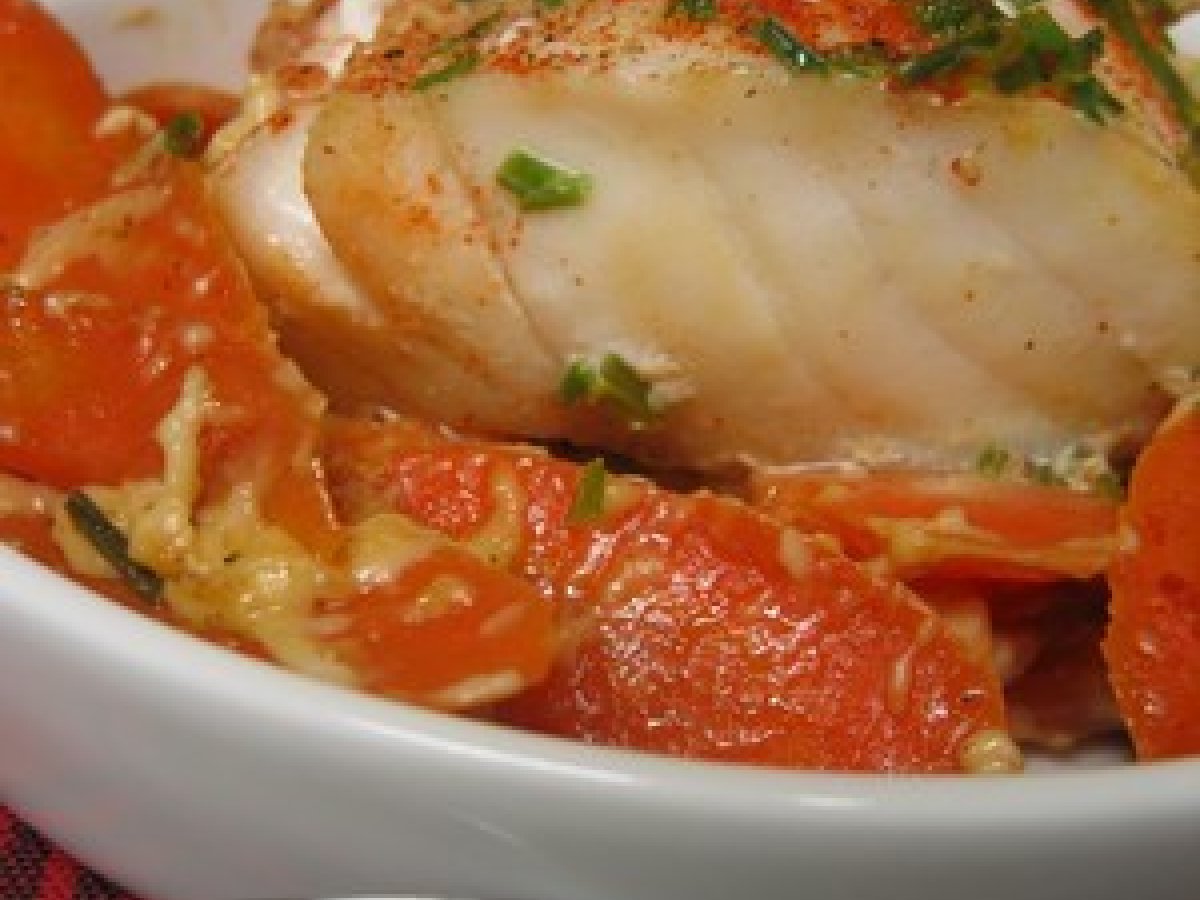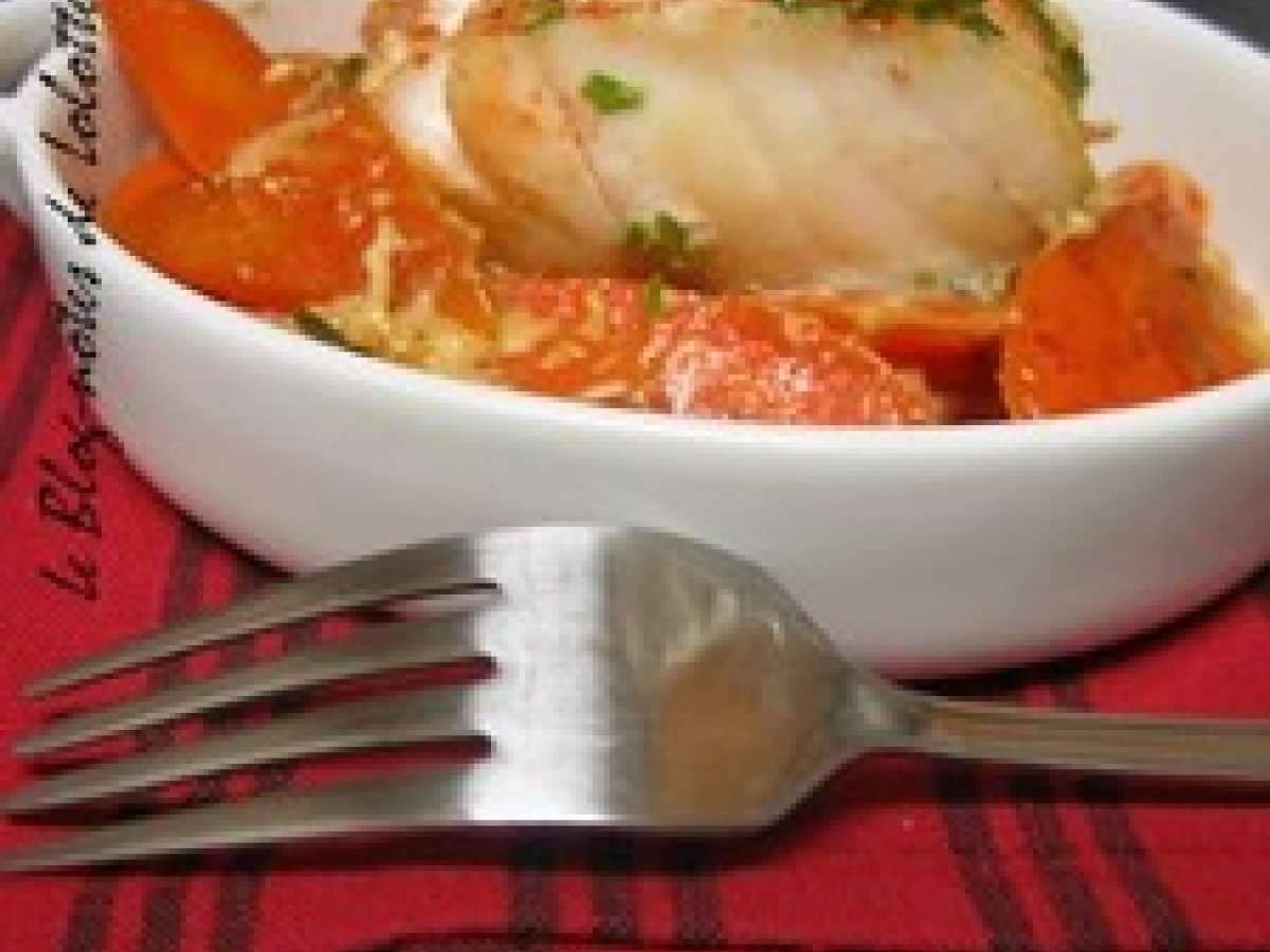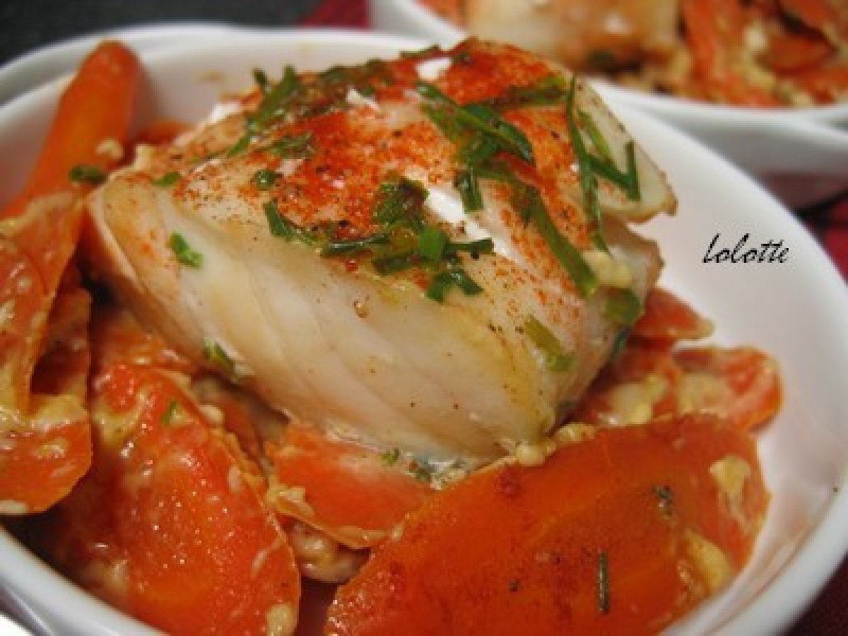 Petit plat gourmand de cabillaud pané à la ciboulette sur lit de carottes