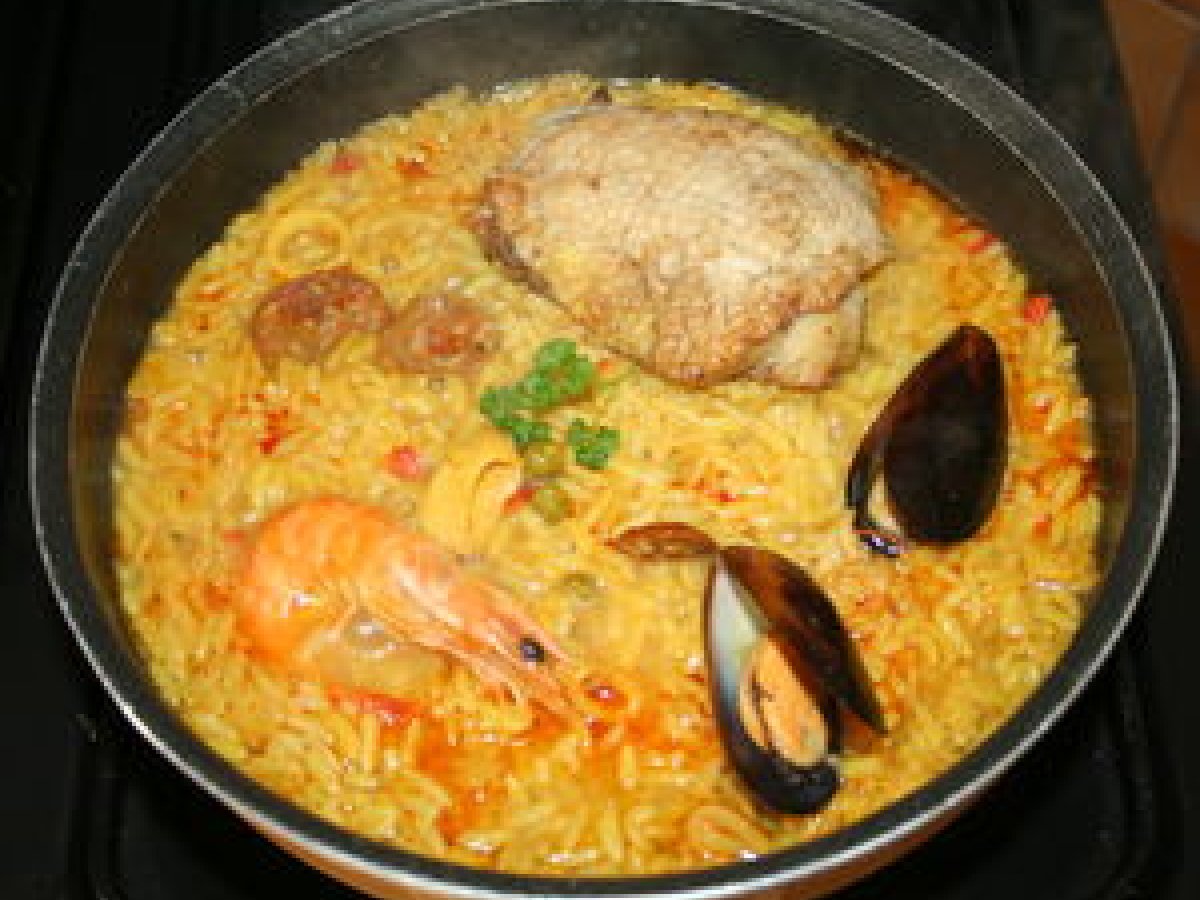 Petite paëlla rapide de 12h05 Platfacile35 min699 Kcal Envoyer cette recette à un ami Imprimer cette page Poser une question à l'auteur Publier votre photo de cette recette Ingrédients 3 riz rond 1 reste de poulet ou de lapin ou les deux 1 reste de poisson 1 reste de moule 1 reste de calamars quelques rondelles de chorizo 1 reste de crevettes roses 1 oignon bouillon de poisson ou de volaille clou de girofle 1 pointe de safran paprika sel Coût estimé: 9.17Euros€ (3.06€/part)