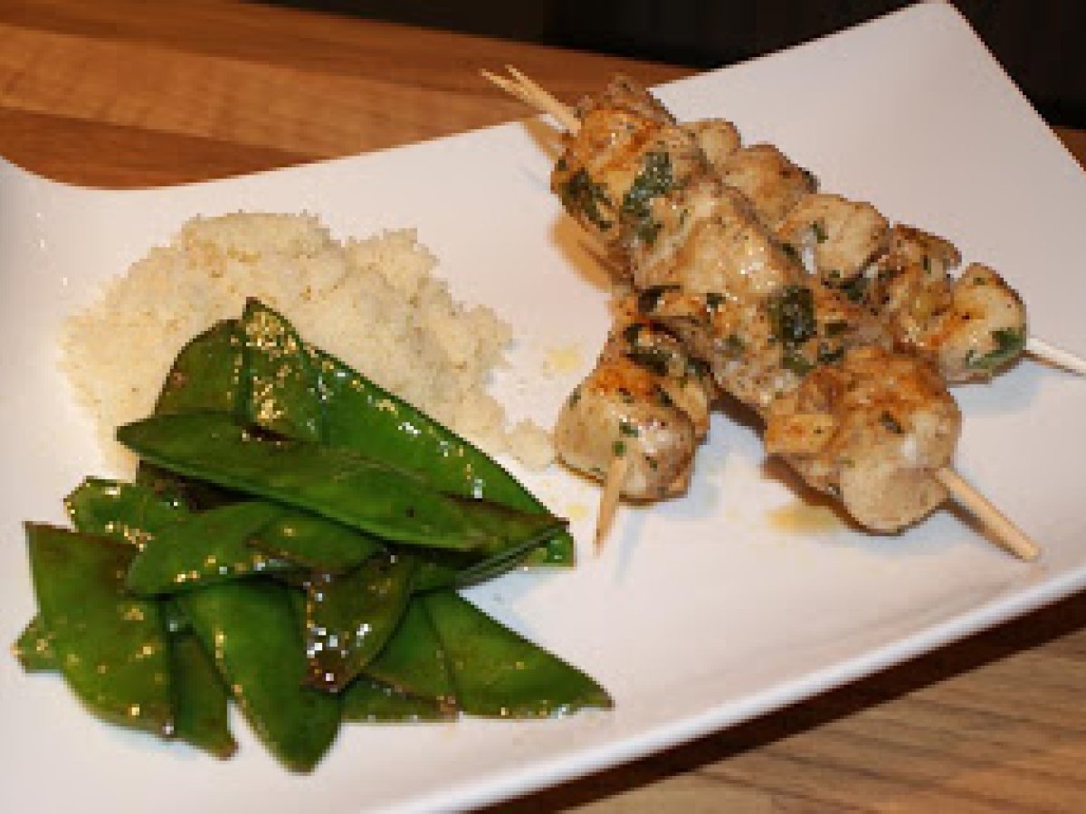 Petites brochettes de poulet marinées à l'oriental