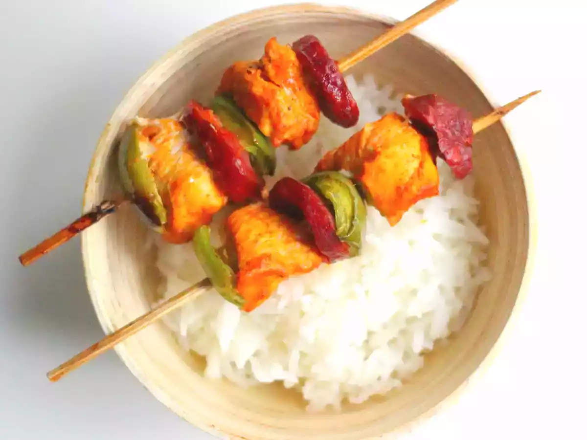 Avec la recette du jour, nous vous emmenons en Europe du Sud avec une pointe espagnole. Ces brochettes seront parfaites pour vos soirées barbecues. A défaut de barbecue, cette recette fonctionne aussi pas mal avec une cuisson au grill.