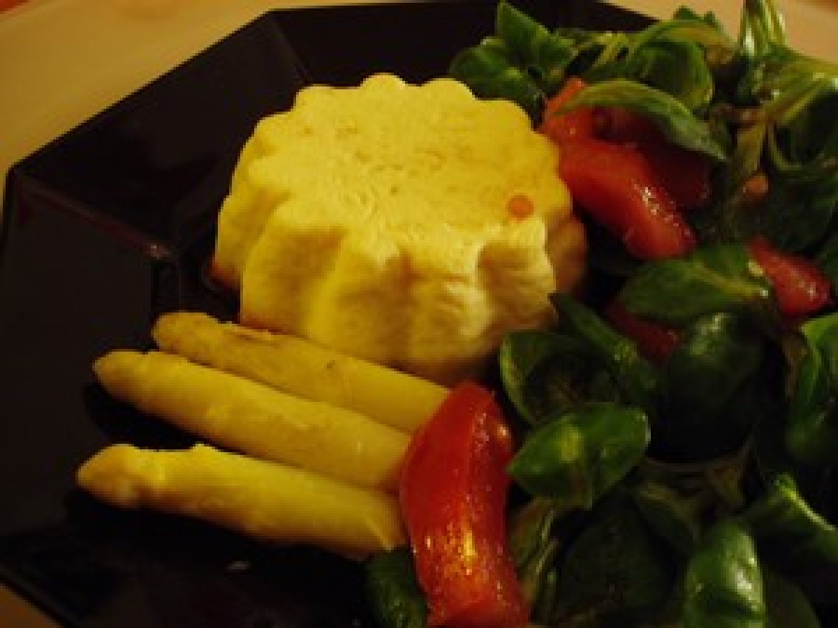 Petits flans d'asperges au parmesan de julie andrieu PrécédentSuivant Platfacile1 h 10 m1139 Kcal Envoyer cette recette à un ami Imprimer cette page Poser une question à l'auteur Publier votre photo de cette recette Délicieux, frais et tout doux... Ingrédients 3 20 cl de crème fleurette 60 g de parmesan 3 oeufs 2 cuillères à soupe de ciboulette 500 d'asperges