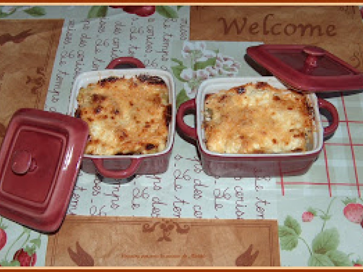 Petits gratins pomme de terre - gouda - courgettes votez maintenant Platfacile25 min Envoyer cette recette à un ami Imprimer cette page Poser une question à l'auteur Publier votre photo de cette recette Ingrédients 4 1 belle courgette 3 pommes de terre 6 cuillères à soupe de crème fraîche des lamelles de Gouda ail paprika gruyère râpé