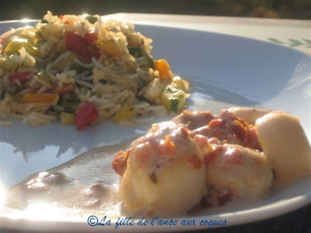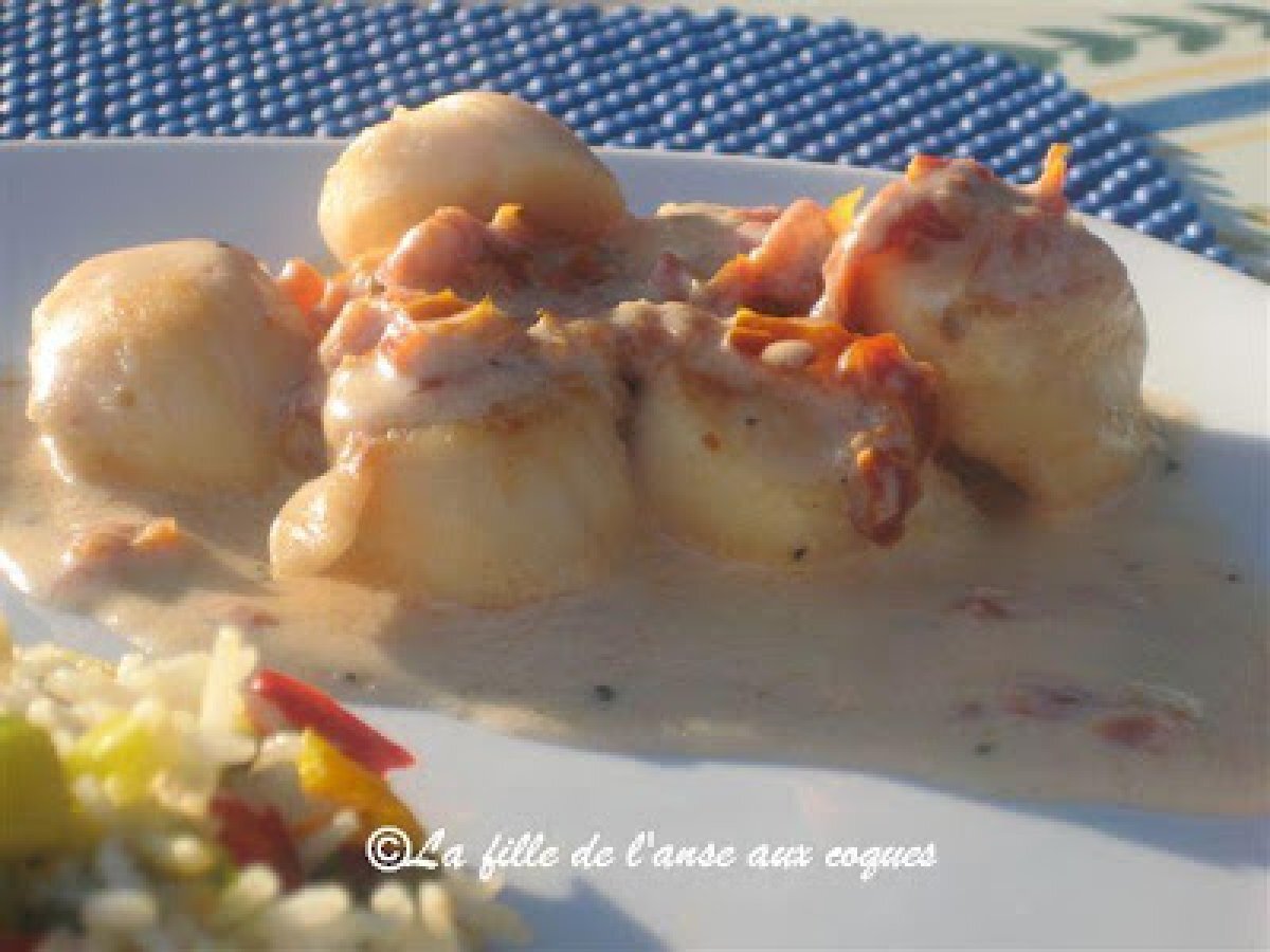 Pétoncle en sauce crème aux tomates séchées PrécédentSuivant Platfacile17 min381 Kcal Envoyer cette recette à un ami Imprimer cette page Poser une question à l'auteur Publier votre photo de cette recette Ingrédients 2 14 pétoncles 1 cuillère à table de beurre ½ tasse de bouillon de légumes 1 cuillère à thé de fécule de maïs 1 pincée de sucre 4 tomates séchées coupées en petits morceaux ¼ cuillère à thé d'herbes salées du Bas-du-Fleuve Vin blanc ¼ tasse de crème 15% Poivre Coût estimé: 12.81Euros€ (6.41€/part)