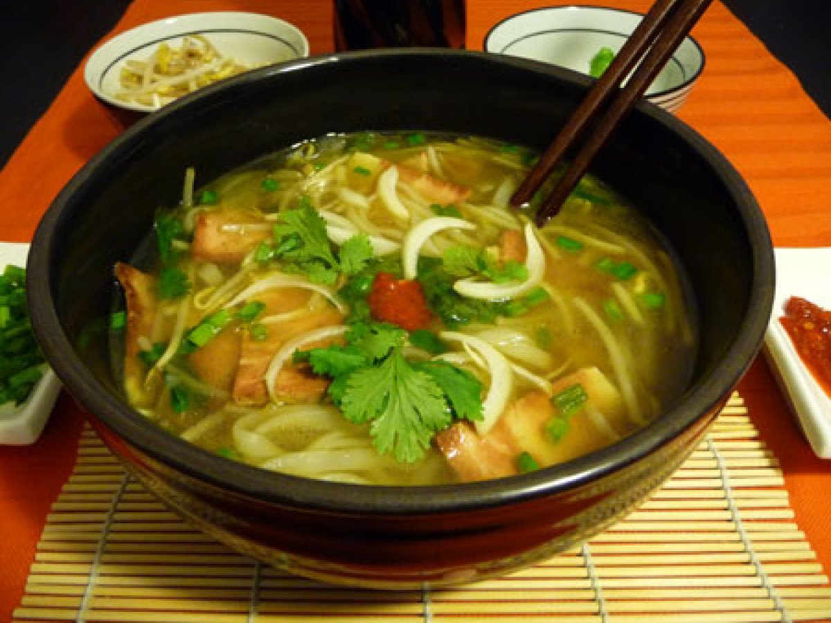 Pho végétarien Platfacile43 min650 Kcal Envoyer cette recette à un ami Imprimer cette page Poser une question à l'auteur Publier votre photo de cette recette Ingrédients 2 150 g de viande végétale ou de tofu fumé 200 g de nouilles de riz 1 cube de préparation pour Pho 1 cube de bouillon de légumes 3 cuillères à soupe de sauce soja 1 cuillère à soupe d’Arôme Saveur Maggi 1 étoile de badiane 2 clous de girofle 8 graines de coriandre 4 graines de cardamone 1 cuillère à soupe de muscade en poudre 1 cuillère à café de gingembre râpé 1 oignon doux Poivre du moulin Pousses de soja Coriandre Ciboulette Pâte de piment ou sauce Sriracha