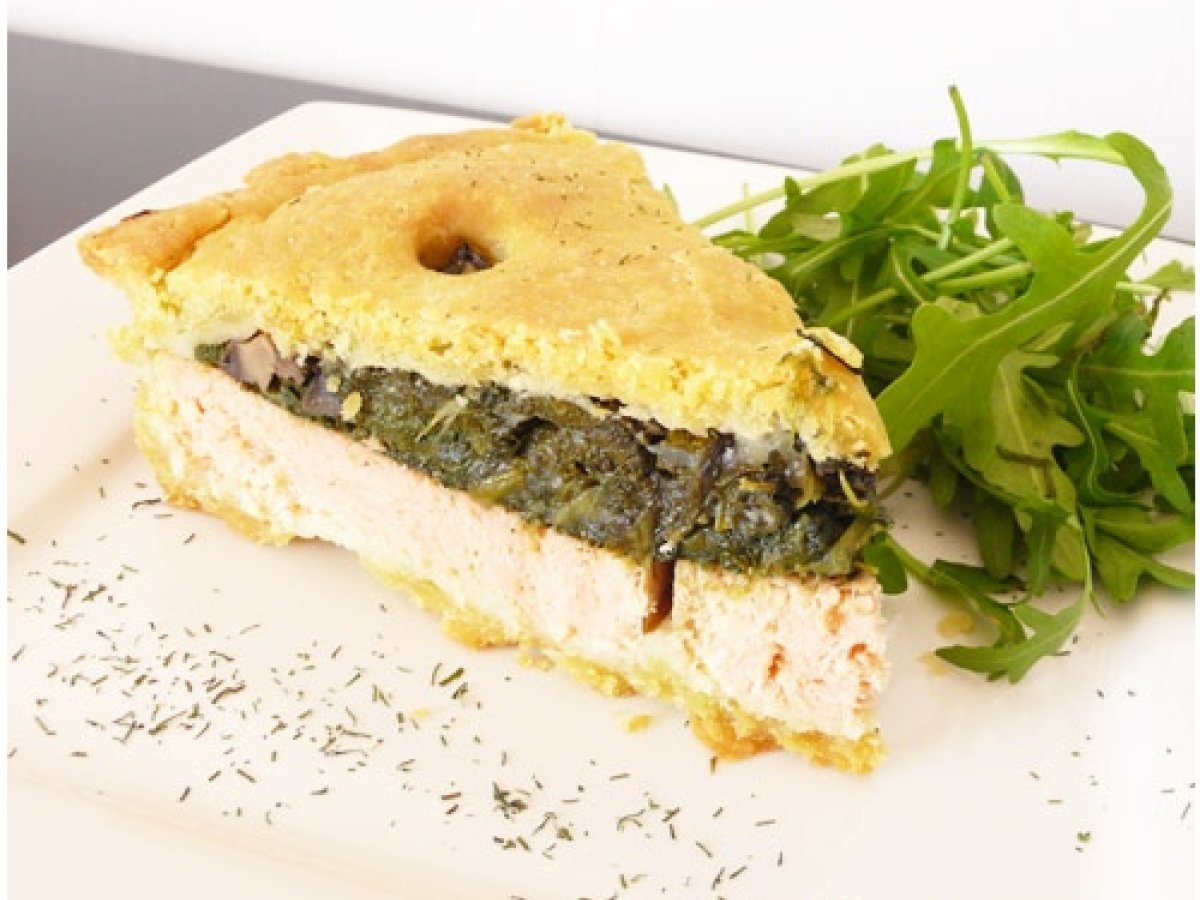 Pie de saumon aux épinards votez maintenant PrécédentSuivant Platfacile1 h 15 m669 Kcal Envoyer cette recette à un ami Imprimer cette page Poser une question à l'auteur Publier votre photo de cette recette Ingrédients 6 Pour la pâte : 400 g de farine 20 cl d’huile d’olive 10 cl d’eau 1 oeuf 1/2 cuillère à café de sel Pour la farce : 400 g de saumon 400 g d’épinard surgelé en branche 1 oignon 4 gros champignons blancs 2 cuillères à soupe d’aneth ciselé sel poivre 1 belle cuillère à soupe de fumet de poisson 1/2 citron