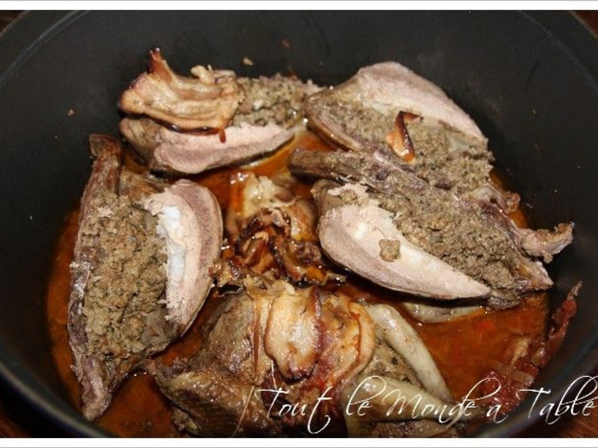 - Faire chauffer un peu d'huile d'olive dans une grande cocotte . Faire dorer les pigeons sur toutes les faces .