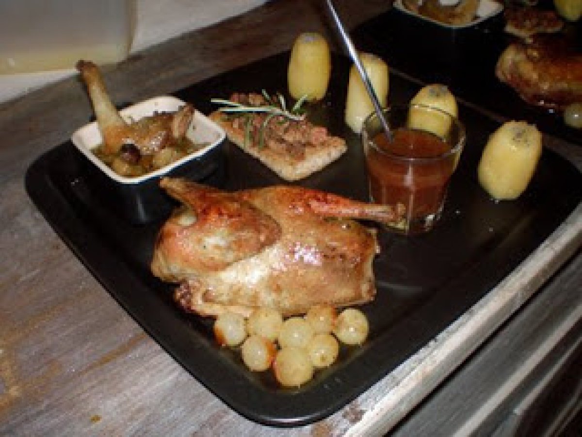 Le pigeonneau rôti et petits raisins: