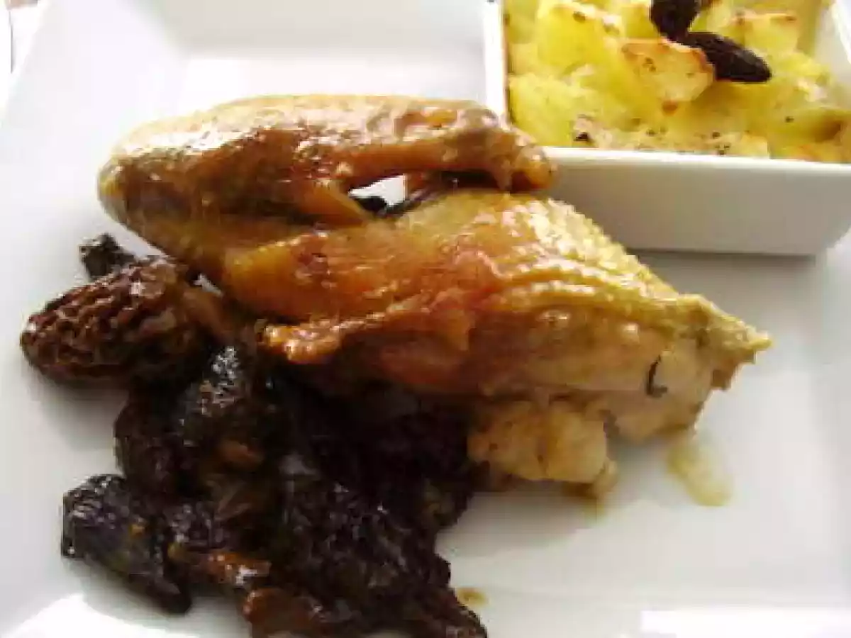 Pintade aux moriles et gratin de céleri Platmoyen1 h 30 m475 Kcal Envoyer cette recette à un ami Imprimer cette page Poser une question à l'auteur Publier votre photo de cette recette Ingrédients 6 1 pintade (coupée en 8) 50gr de morilles séchées 1CS d'huile 1cc de beurre 2 échalotes 15 cl de bouillon de volaille 15cl de vin blanc 1CS de farine 4 pommes de terre 1/4 de céleri -rave 3 jaunes d'oeufs 15cl de crème liquide 1/2 jus de citron persil sel poivre