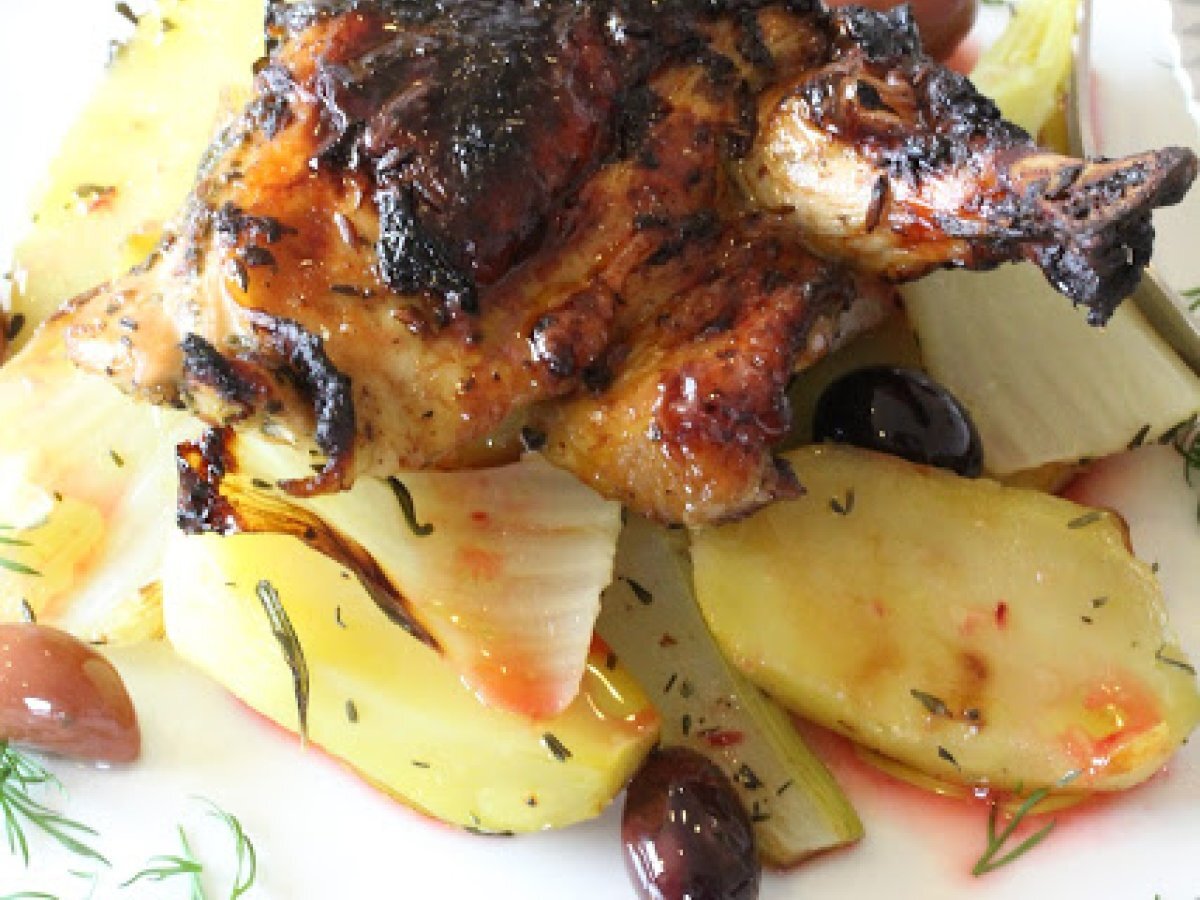 Pintade aux pommes de terre , fenouil et orange sanguine recette jamie oliver votez maintenant PrécédentSuivant Platfacile1 h 22 m Envoyer cette recette à un ami Imprimer cette page Poser une question à l'auteur Publier votre photo de cette recette Ingrédients 4 4 morceaux de pintade 1 cuil à soupe de graines de fenouil 3 tiges de romarin frais 5 branches de thym frais 2 gousses d'ail écrasées 1/2 verre de gin le zeste et le jus de 2 oranges sanguines+ 1 orange pour la vinaigrette 2 kg de pommes de terre 100 g d'olives violettes 3 bulbes de fenouil huile d'olive