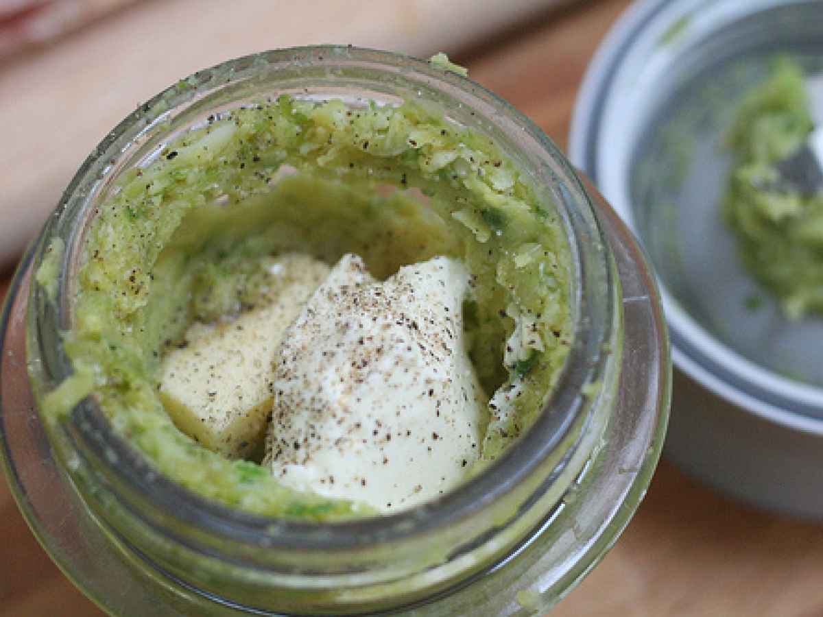 Égoutter et mixer avec le beurre, la crème fraîche et l'assaisonnement. - Réserver au chaud jusqu'au moment de servir.
