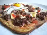 Pizza à la bolognaise PrécédentSuivant Platfacile45 min Envoyer cette recette à un ami Imprimer cette page Poser une question à l'auteur Publier votre photo de cette recette Voici la deuxième pizza ... une pizza à la bolognaise! Ingrédients 3 Pâte à pizza: 540 ml d'eau 600g de farine blanche 300g de farine complète 1 sachet de levure 3 cuillères à soupe d'huile d'olive 1 cuillère à café de sucre 1 cuillère à café de sel Ingrédients : 2 cuillères à soupe de crème fraîche 1 boîte de conserve de chair de tomate au basilic 2 steak hachés gruyère râpé