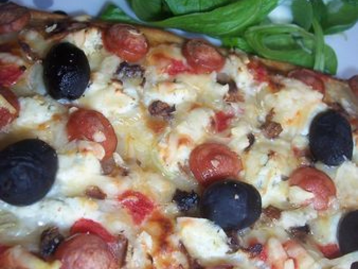 Essayer une pizza avec un fond de crème fraîche pour changer un peu de la tomate. C'est vraiment excellent!!