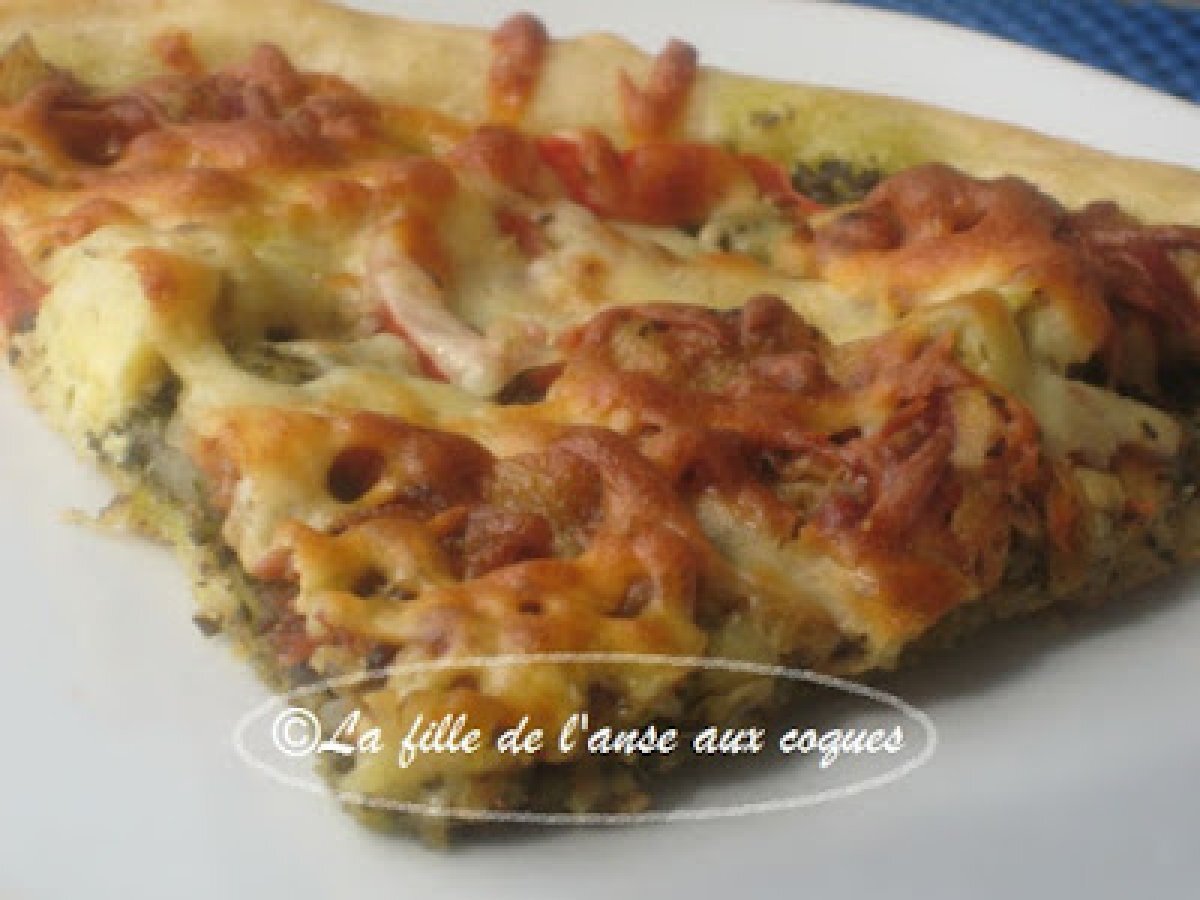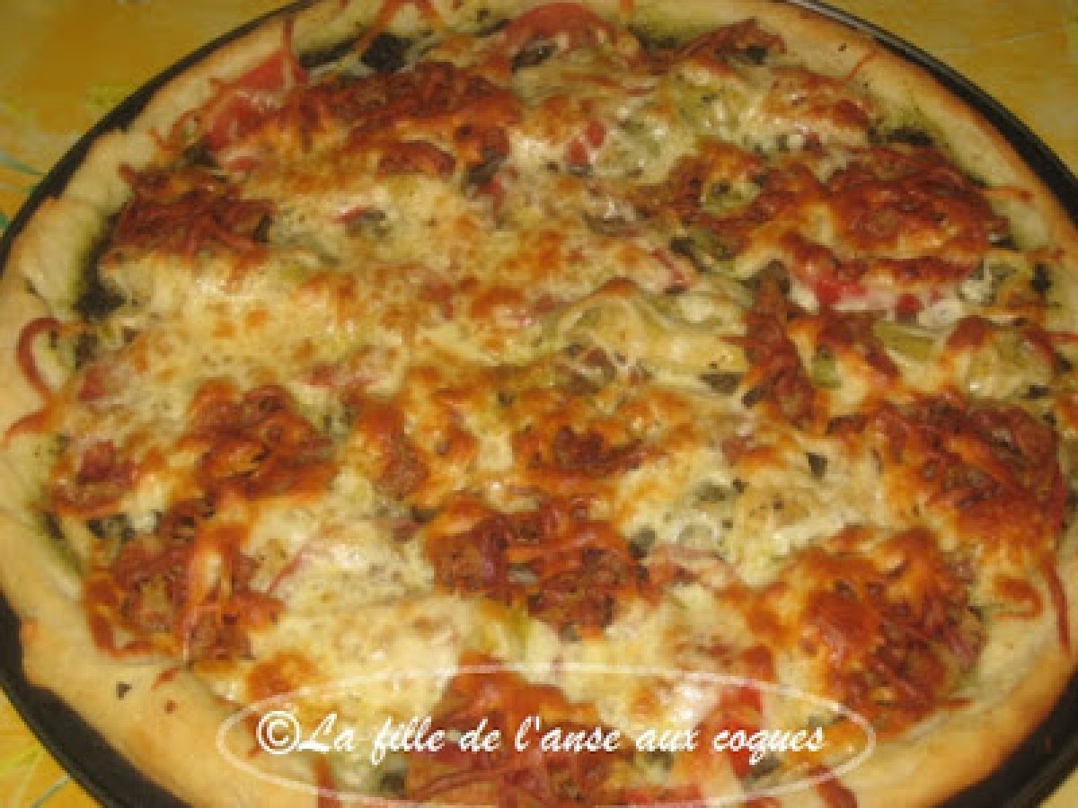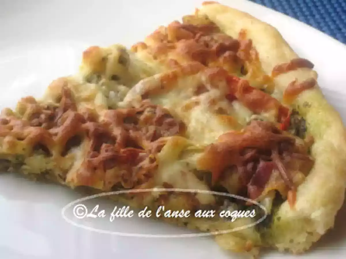 Pizza à la pancetta et aux artichauts PrécédentSuivant Platfacile25 min Envoyer cette recette à un ami Imprimer cette page Poser une question à l'auteur Publier votre photo de cette recette Ingrédients 4 1 pâte à pizza de votre choix Environ 1/3 à ½ tasse de pesto de basilic Une douzaine de tranches de pancetta 1 oignon tranché en fines lamelles 1 tomate tranchée en rondelles 1 petit pot de coeurs d'artichauts marinés 1 ¼ tasse de mozzarella râpé