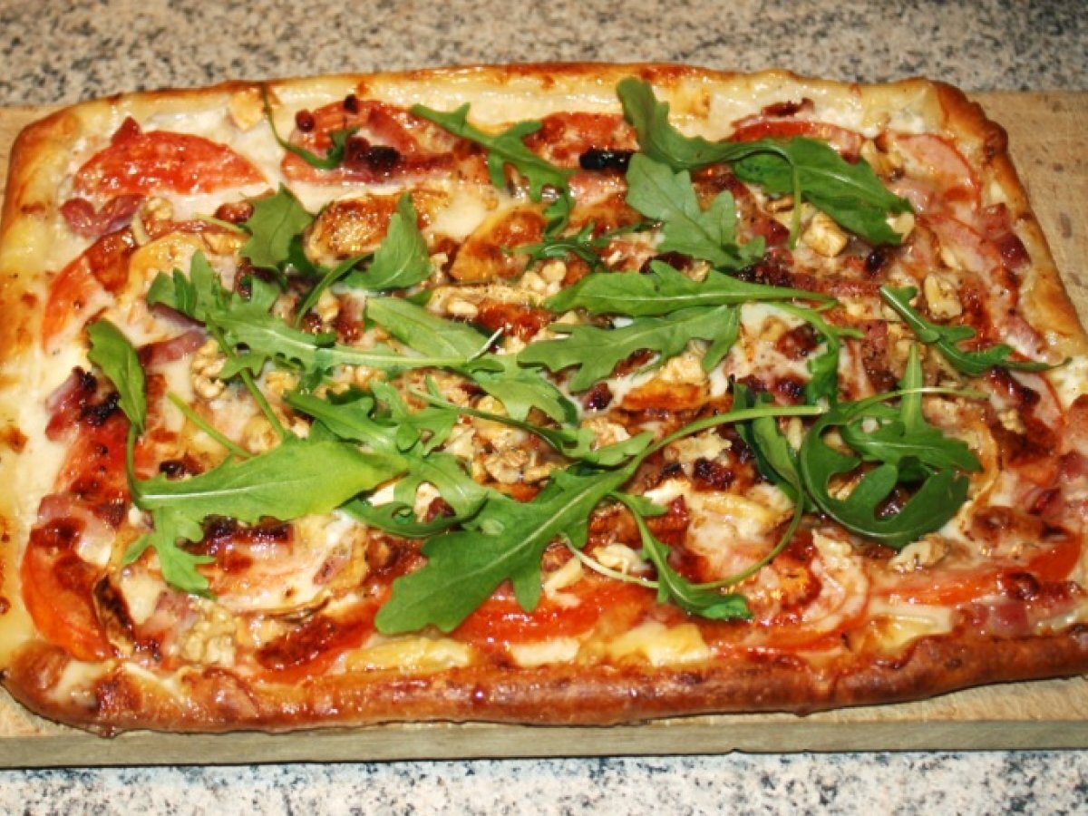 On s’est bien régalés ! Une fois n’est pas coutume, voici une recette qui m’est tout simplement venue à l’esprit en feuilletant un prospectus Picard ! Je me suis dit, humm, ça a l’air bon, mais pour une simple pizza, c’est quand même bien dommage de l’acheter en surgelé… N’ayant pas goûté à l’originale, je ne pourrai pas vous dire si ma recette y ressemble !