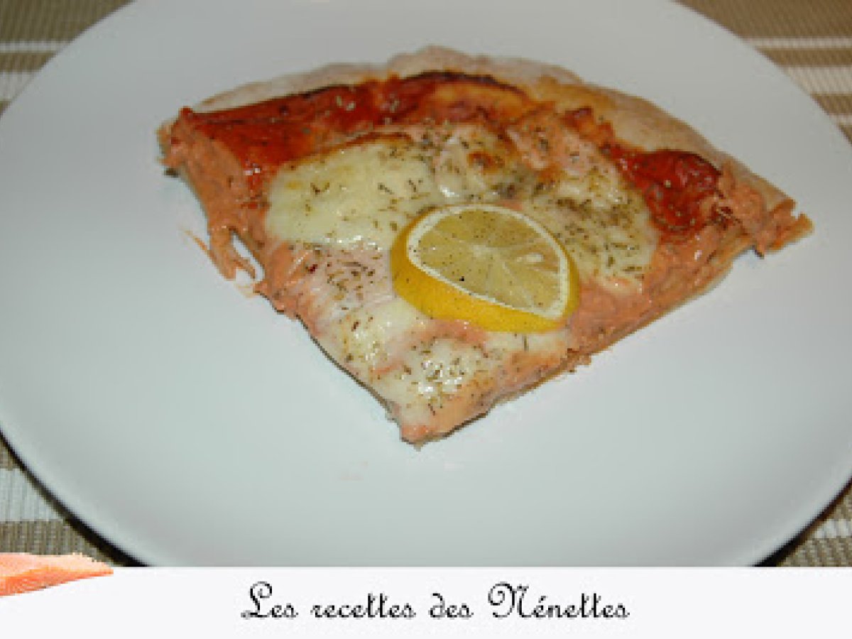 Pizza aux deux saumons Platfacile55 min416 Kcal Envoyer cette recette à un ami Imprimer cette page Poser une question à l'auteur Publier votre photo de cette recette Ingrédients 4 une pâte à pizza une belle escalope de saumon 2 tranches de saumon fumé (bio) une boîte de concentré de tomates un pot de crème fraîche épaisse une boule de mozzarella origan sel poivre un citron Coût estimé: 8.96Euros€ (2.24€/part)