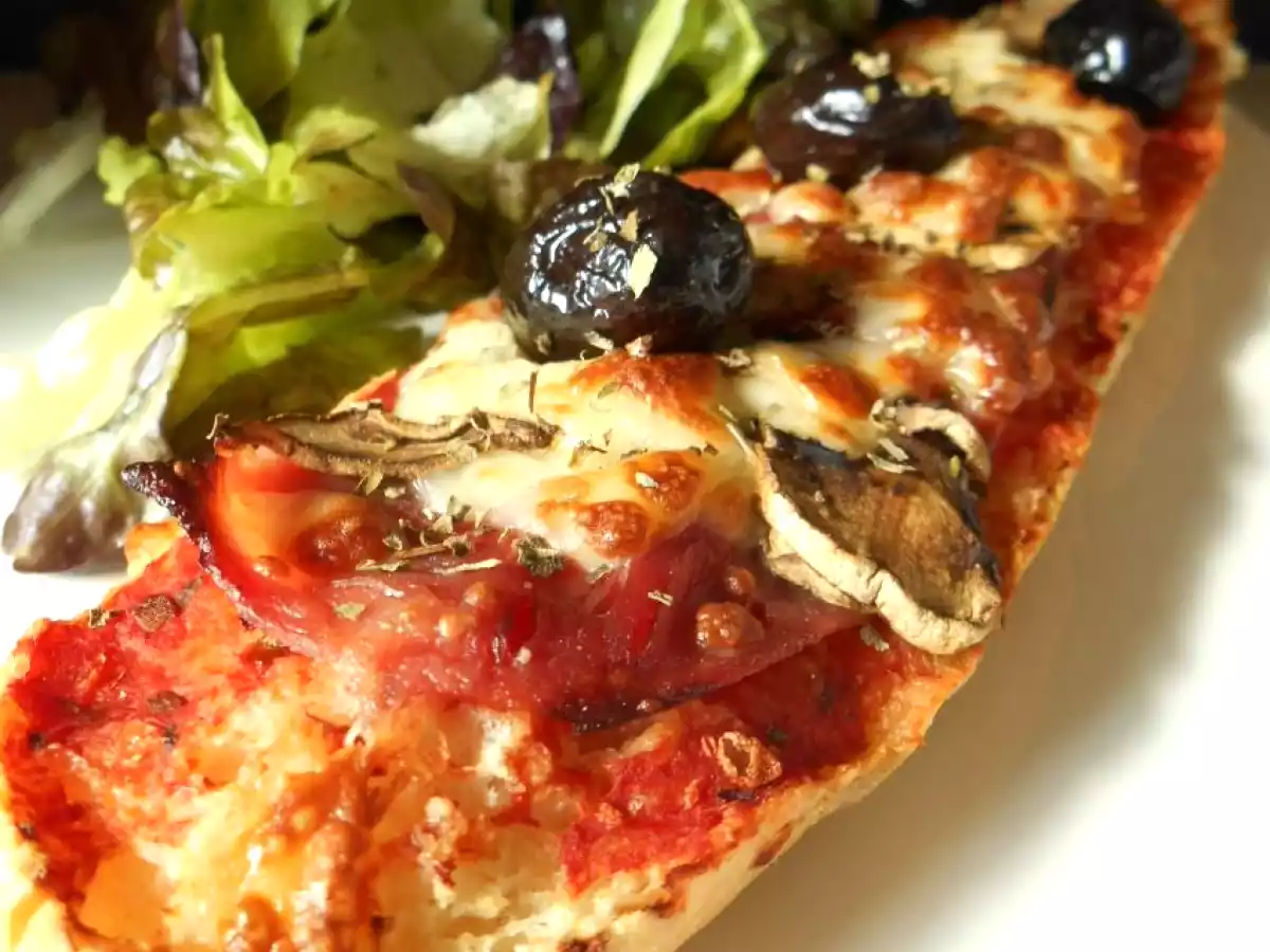 Pizza « baguette » PrécédentSuivant Platfacile25 min370 Kcal Envoyer cette recette à un ami Imprimer cette page Poser une question à l'auteur Publier votre photo de cette recette Une baguette façon pizza Régina... Ingrédients 4 1 baguette de pain 4 tranches de jambon blanc 250 gr champignons frais 1 pot de sauce tomate Fromage râpé ( mozzarella, gruyère...) Origan Huile d'olive Olives noires Coût estimé: 6.15Euros€ (1.54€/part)
