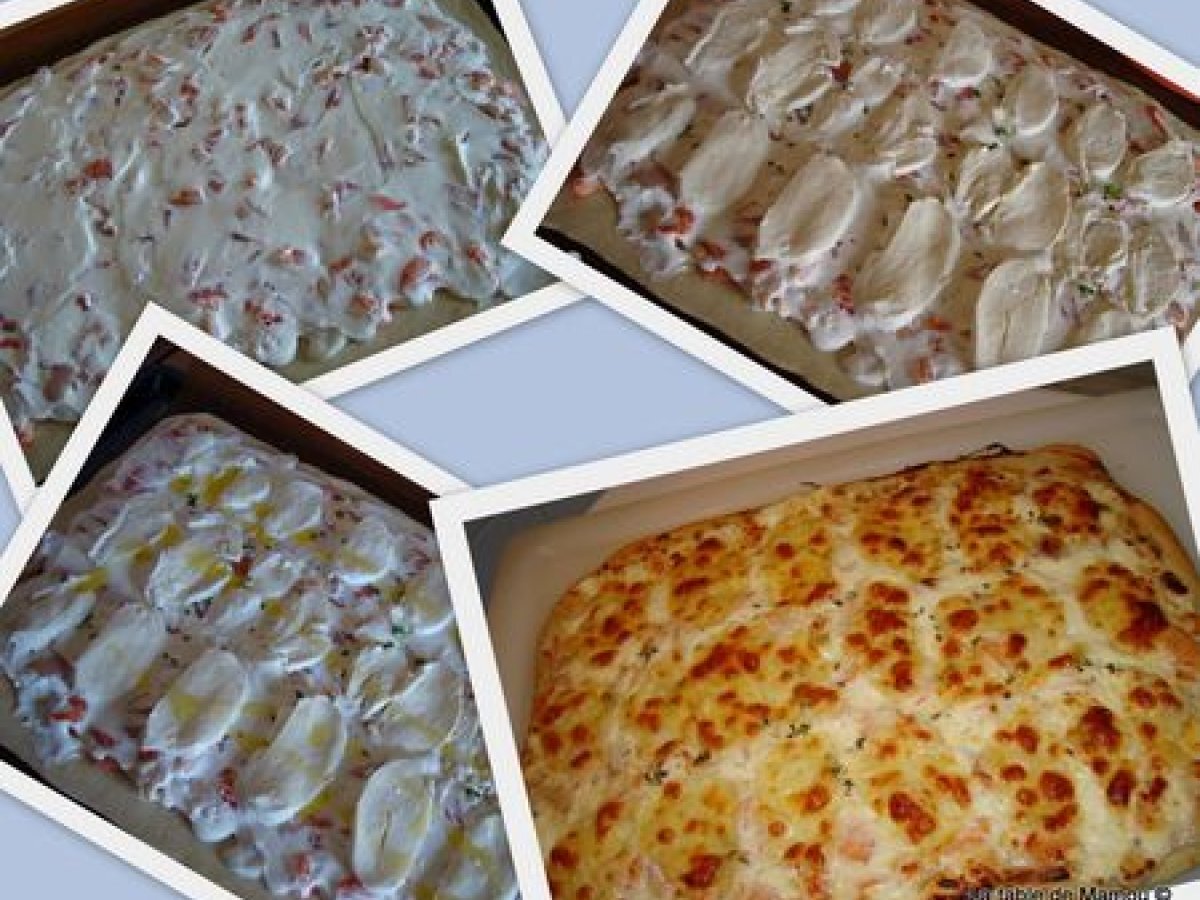 Pizza blanche et rouge... votez maintenant PrécédentSuivant Platfacile2 h 30 m839 Kcal Envoyer cette recette à un ami Imprimer cette page Poser une question à l'auteur Publier votre photo de cette recette Ingrédients 6 Pour la pâte pour 2 grandes pizza : 450 g de farine T 65 250 g d'eau 4 cuillères à soupe d'huile d'olive extra vierge 1 cuillère à café de sucre 1 cuillère à café de levure Bruggeman 1/2 cuillère à café de sel Garniture pizza blanche : 200 g de saumon fumé 125 g de truite fumée 100 g de crevettes 125 g d'écrevisses 4 cuillères à soupe de fromage blanc 4 cuillères à soupe de crème fraîche 2 boule de mozzarella thym citron à volonté 1 filet d'huile d'olive Garniture pour la pizza rouge : 1 bonne sauce tomate maison au basilic, bien concentrée 200 g de jambon blanc italien 200 g de champignons 1 grosse échalote 2 boules de mozzarella thym 1 filet d'huile d'olive olives vertes et noires